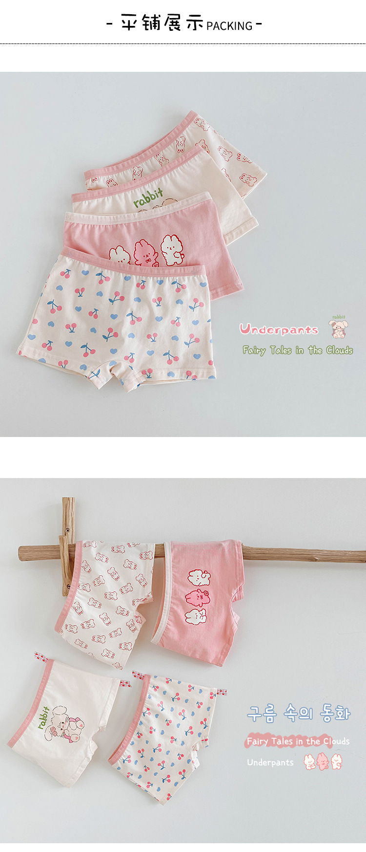 N109 어린이 속옷 도매 가을 구름 동화 만화 속옷 4 조합 복서 면화 소녀 속옷스토어 가기