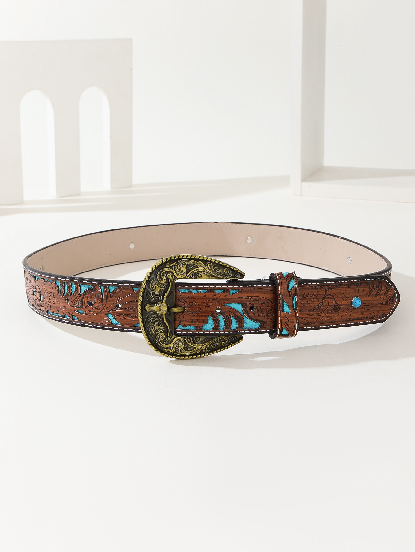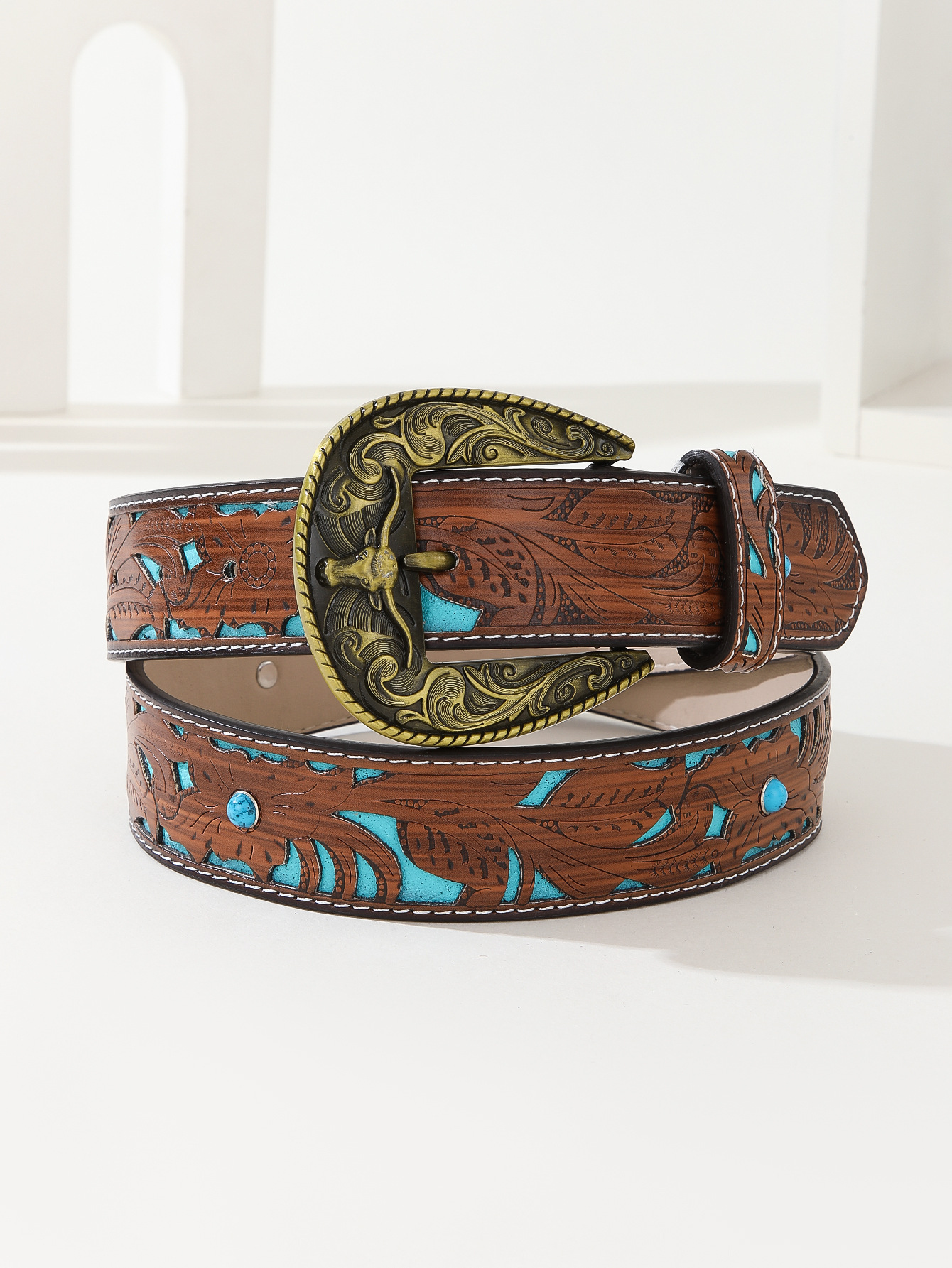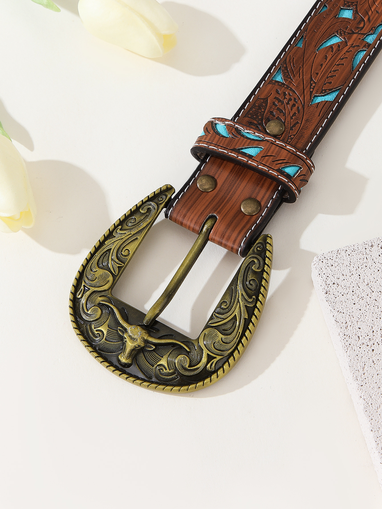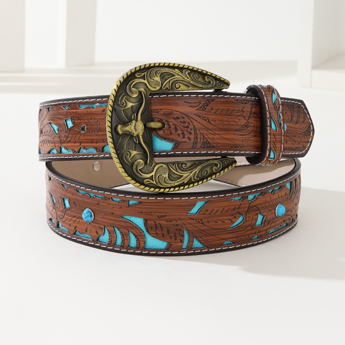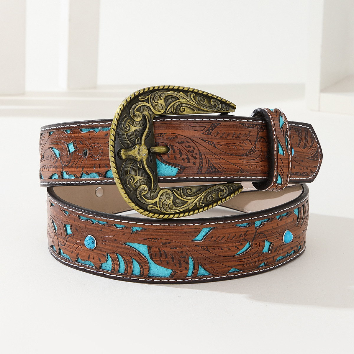 새로운 여성 벨트 레트로 블루 다이아몬드 나무 구슬 개인화 된 패션 올매치 캐주얼 하이 엔드 엠보싱 할로우 장식 허리