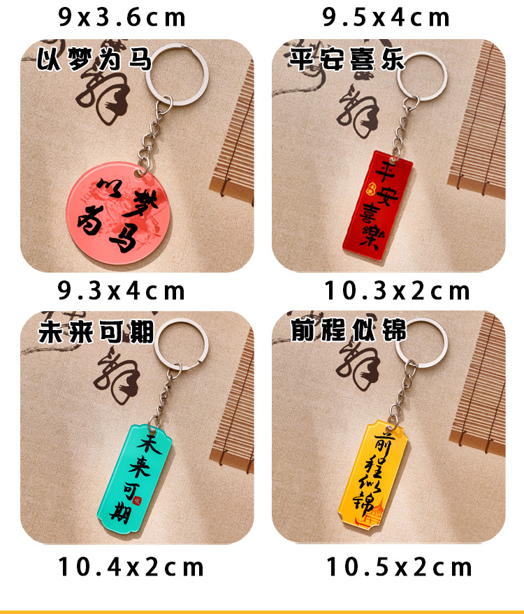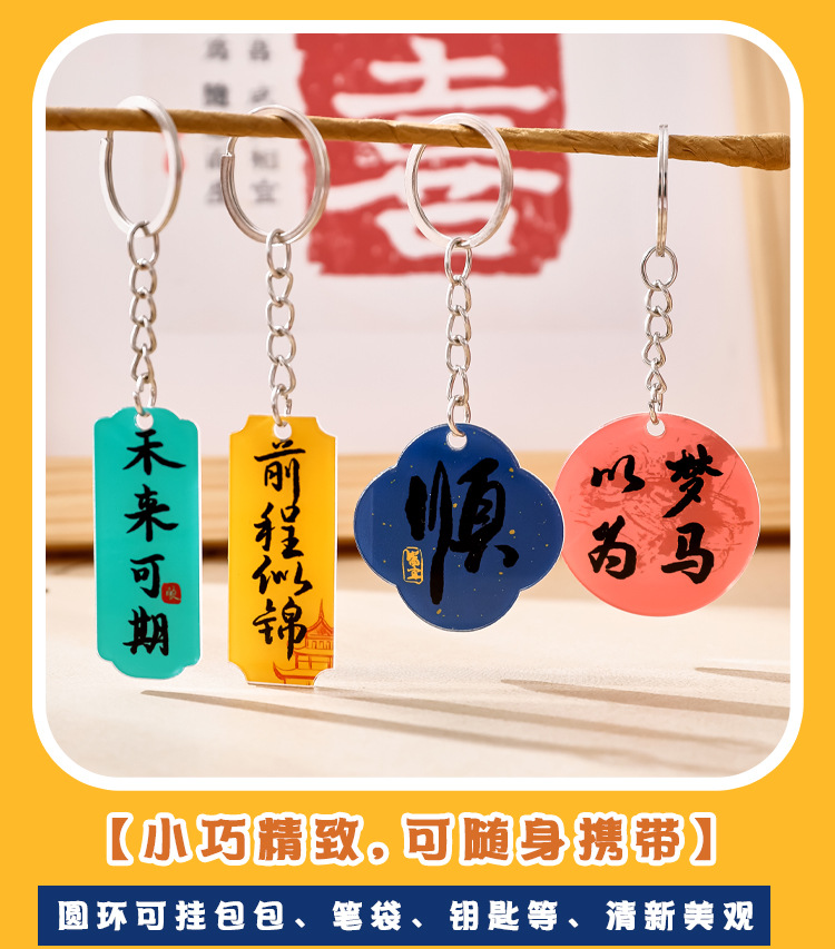 영감을주는 서예 텍스트 키 체인 학생 아크릴 키 체인 국가 스타일 높은 색상 가치 배낭 교수형 작은 선물스토어 가기