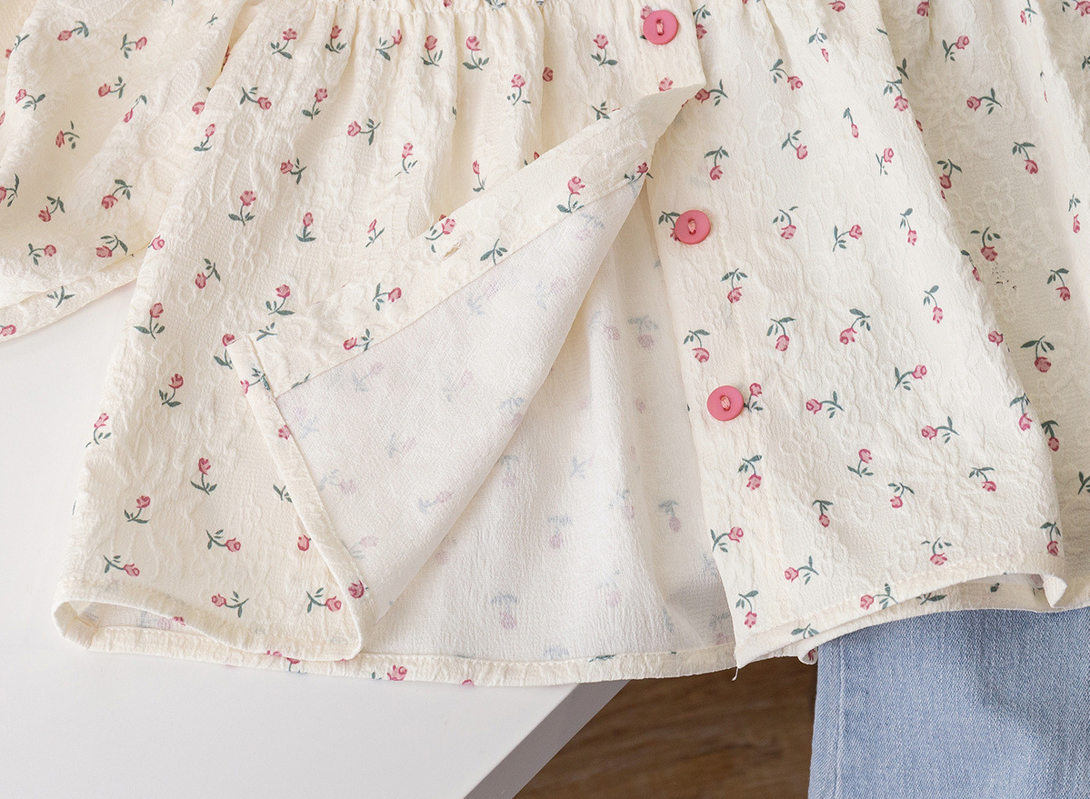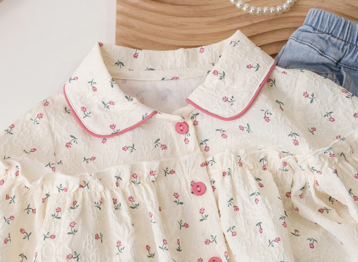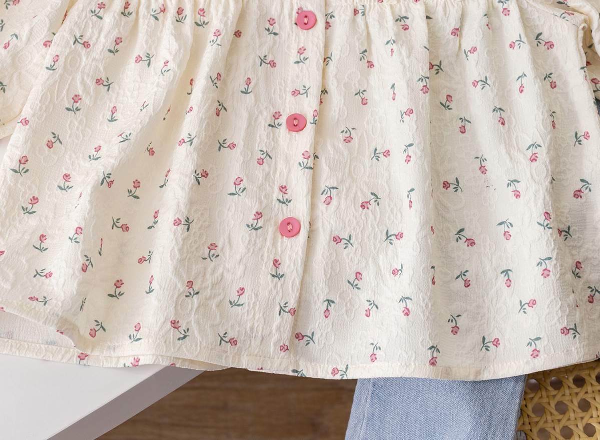 한국 스타일 서양식 소녀 꽃 무늬 셔츠 봄 2025 새로운 아기 소녀 셔츠 아기 소녀 귀여운 아기 인형 셔츠