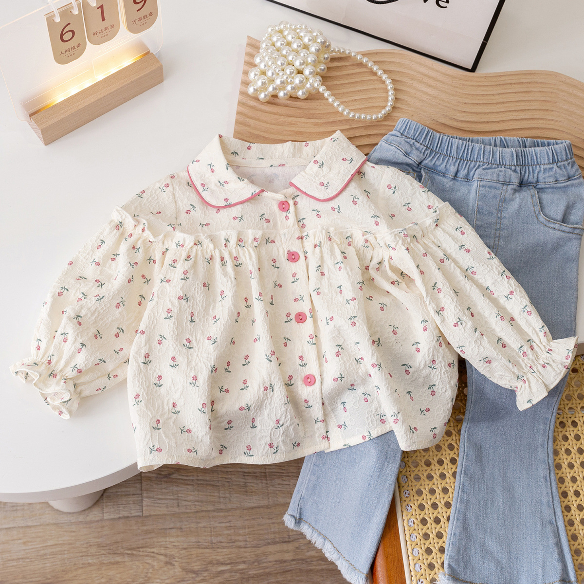 한국 스타일 서양식 소녀 꽃 무늬 셔츠 봄 2025 새로운 아기 소녀 셔츠 아기 소녀 귀여운 아기 인형 셔츠스토어 가기