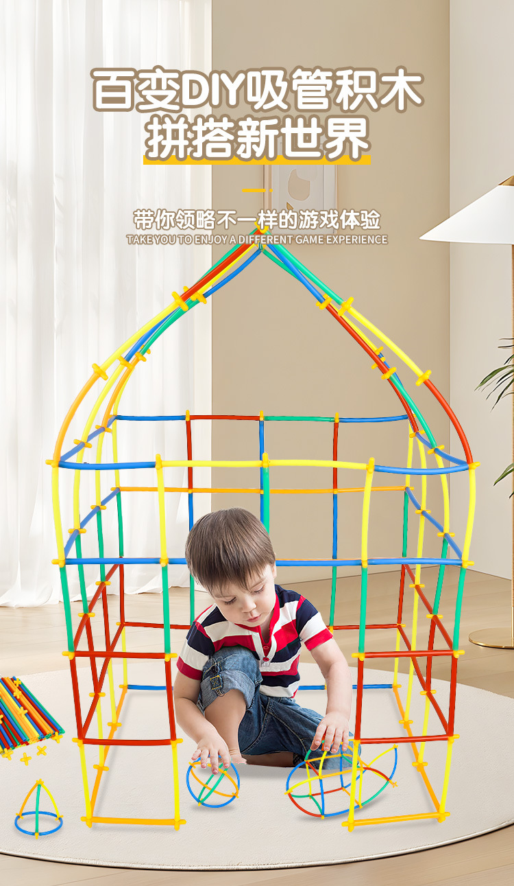 어린이 밀짚 창조적 인 빌딩 블록 DIY 호스 스트립 4D 공간 건축 자재 유치원 조기 교육 장난감스토어 가기