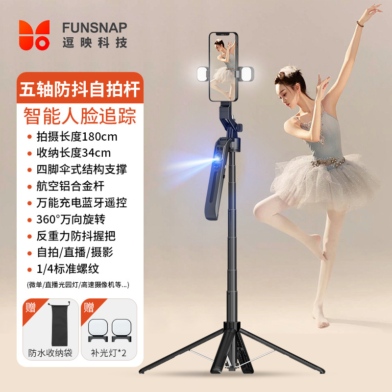 Funsnap/teasing 2025 새로운 스마트 AI 휴대 전화 브래킷 촬영 아름다움 채우기 빛 라이브 쿼드 포드