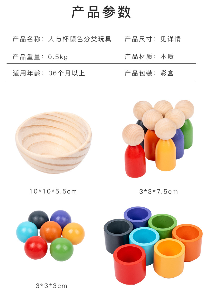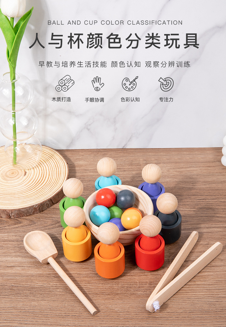 국경 간 나무 어린이 몬테소리 교육 에이즈 0-3 년 된 색상 분류 인간 볼 컵 일치하는 볼 게임 교육 장난감스토어 가기