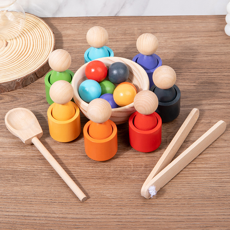 국경 간 나무 어린이 몬테소리 교육 에이즈 0-3 년 된 색상 분류 인간 볼 컵 일치하는 볼 게임 교육 장난감