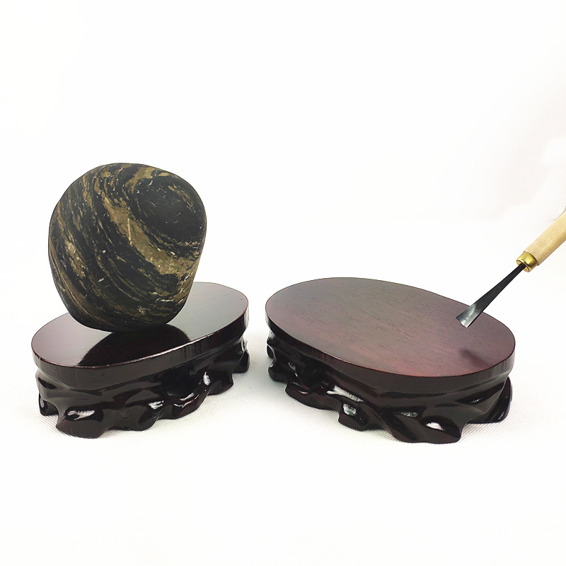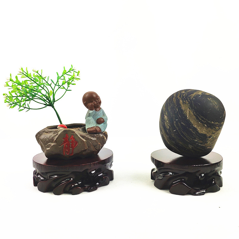 나무베이스 단단한 나무 조각 돌 장식품 둥근 그루빙 부처님 동상 Wen 놀이 꽃 분재 주전자 향 버거 브래킷