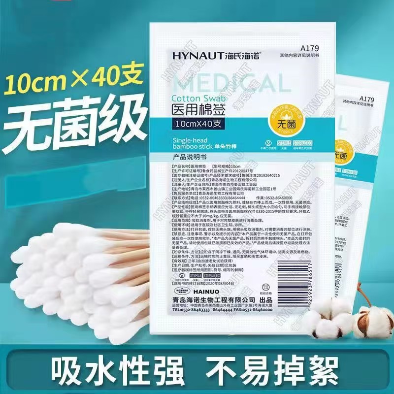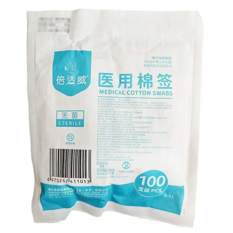 Heinold Medical Cotton Swab 10CM 싱글 헤드 무균 셀프 실링 백 코튼 스틱 더블 헤드 코스메틱 코튼 스틱 휴대용스토어 가기