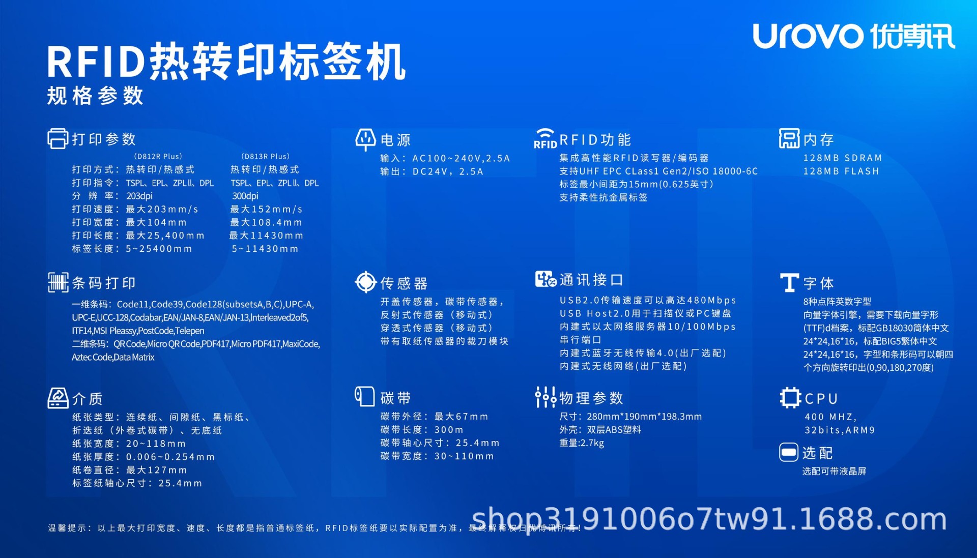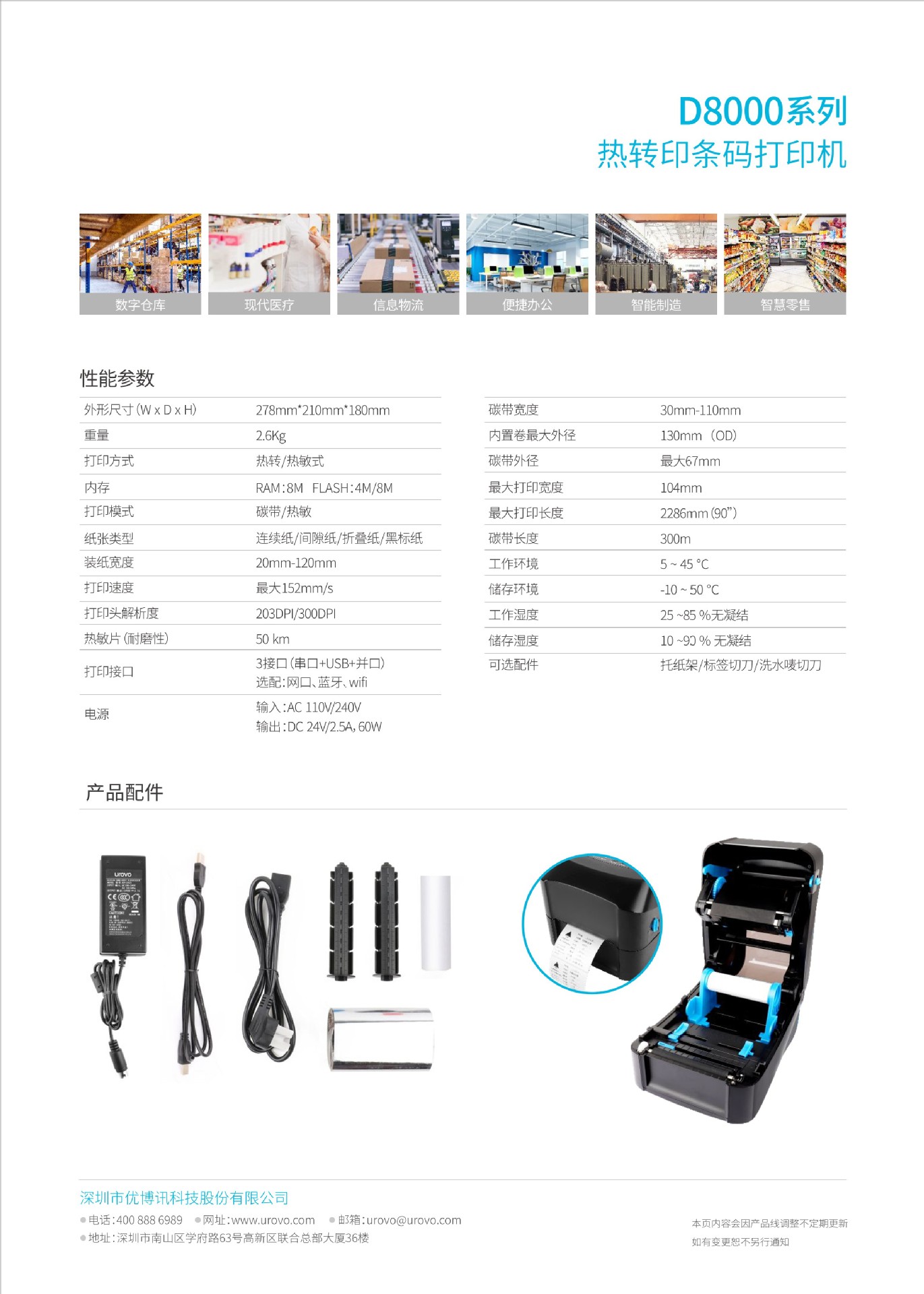 UROVO UBO D7000 시리즈, D8000 시리즈 RFID) 열 전송 라벨 프린터