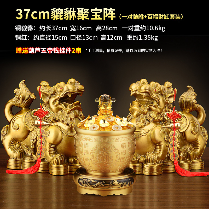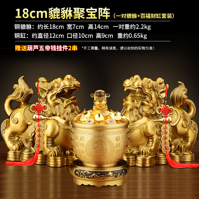 구리 실린더 Baifu 구리 실린더 황동 쌀 실린더 장식품 홈 장식 추가 큰 돼지 저금통 Cornucopia