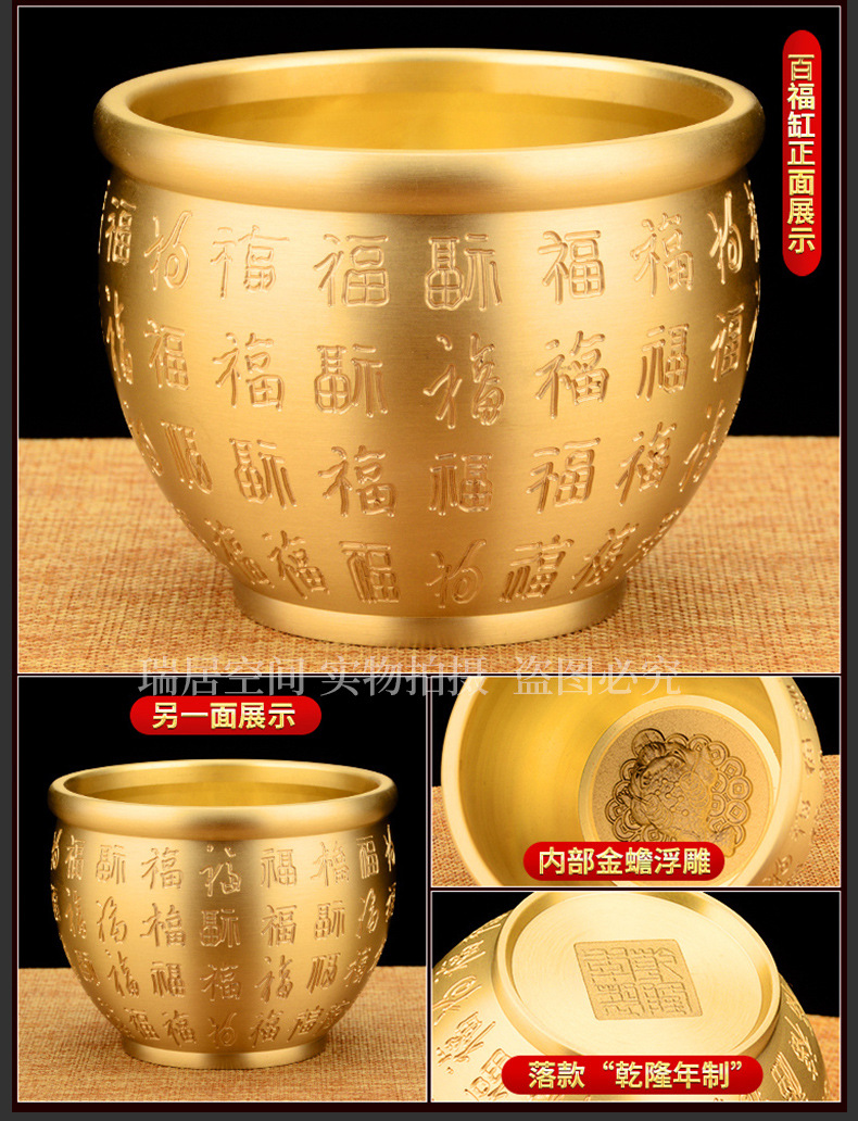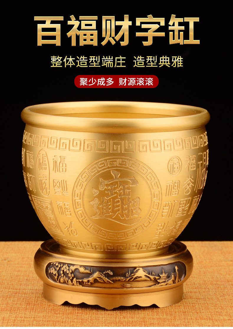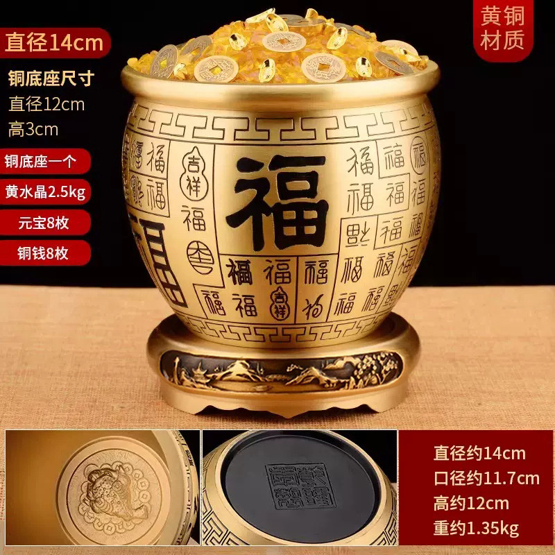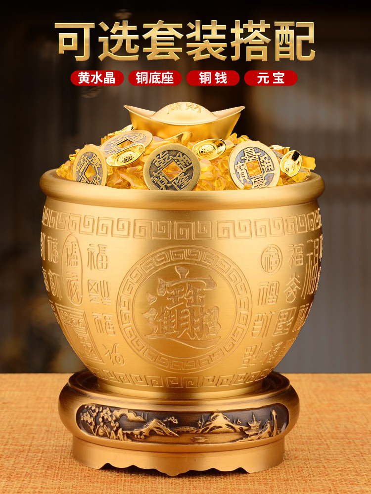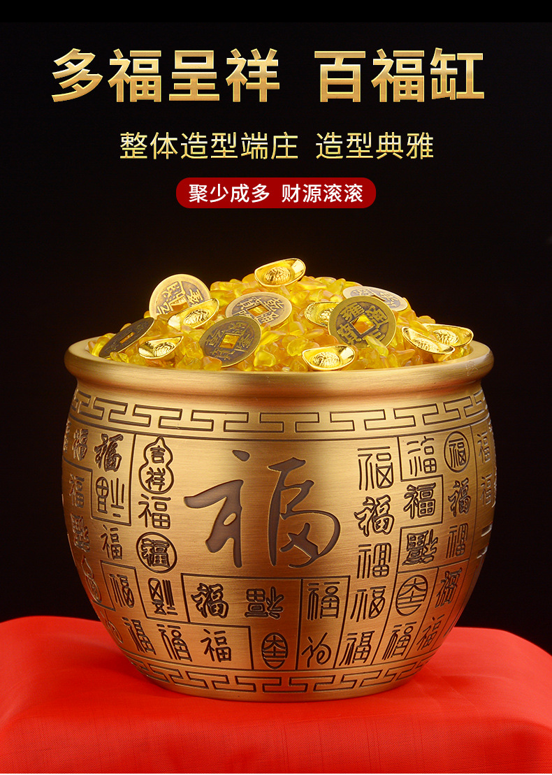 구리 실린더 Baifu 구리 실린더 황동 쌀 실린더 장식품 홈 장식 추가 큰 돼지 저금통 Cornucopia스토어 가기