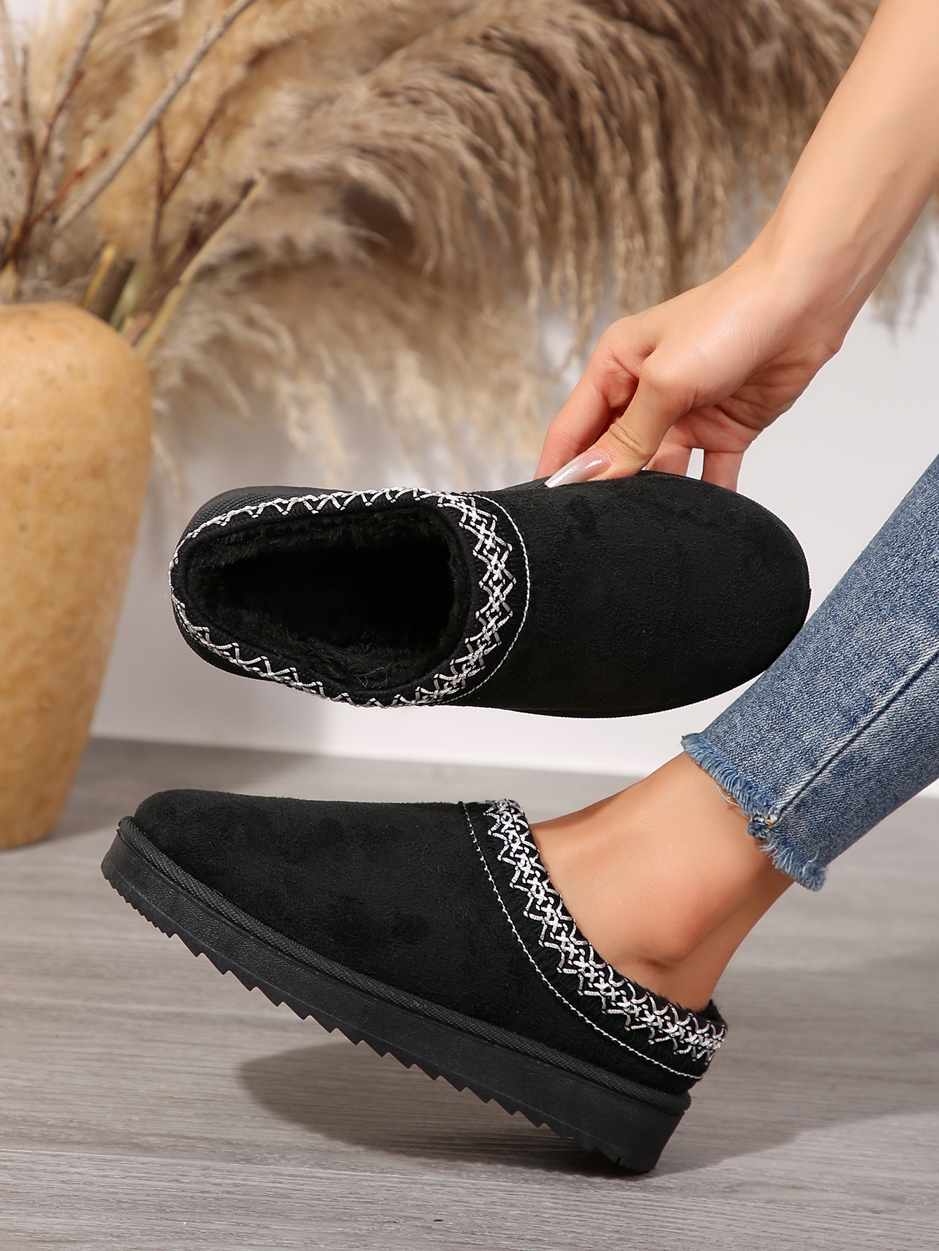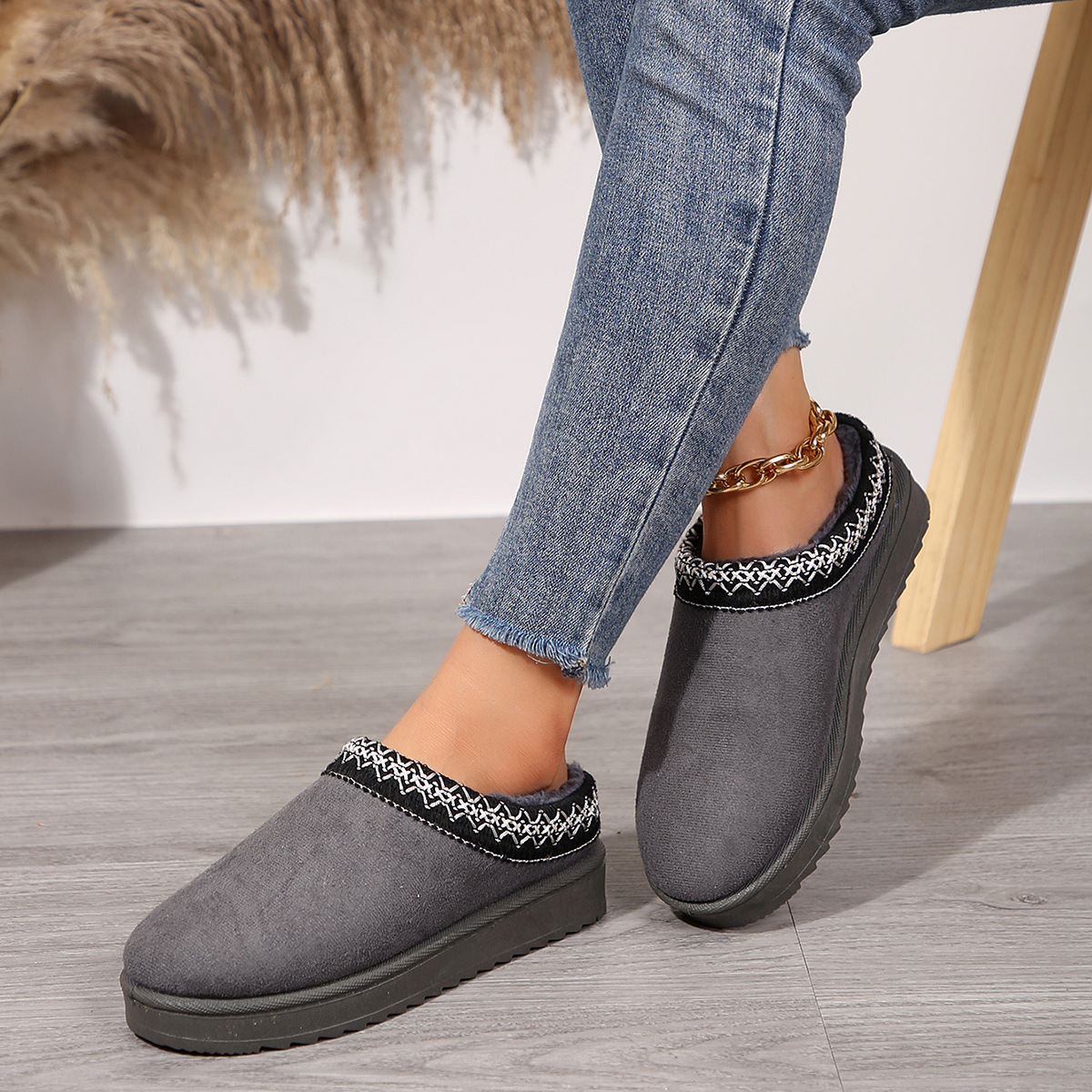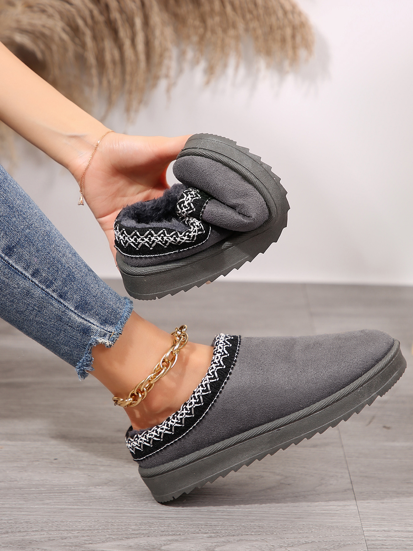 외부 크기 플러스 사이즈 마오 마오 반 슬리퍼 눈화 가을 및 겨울 새로운 43 크기 기모 따뜻한 두꺼운 슬리퍼스토어 가기