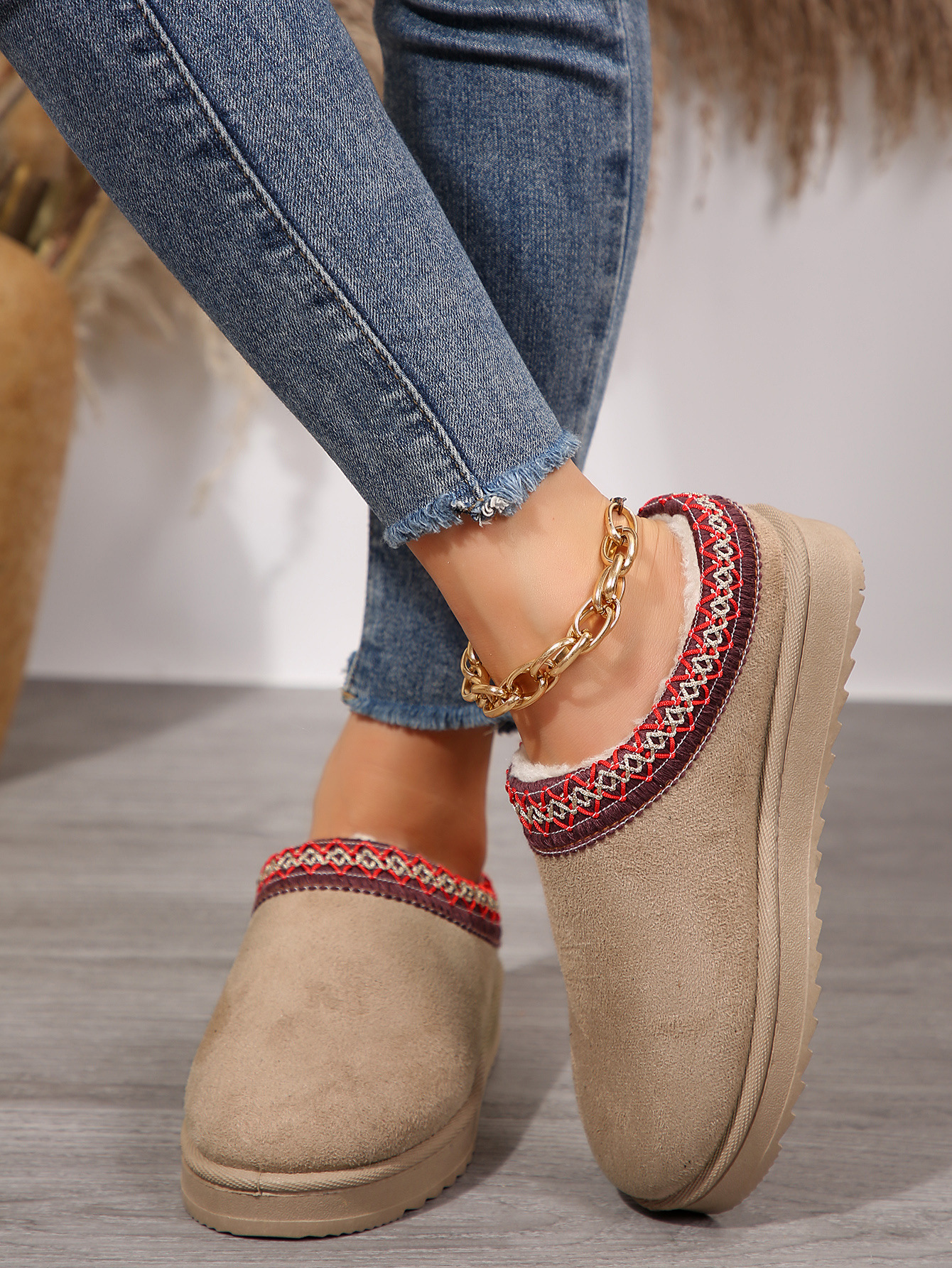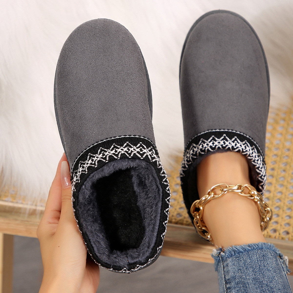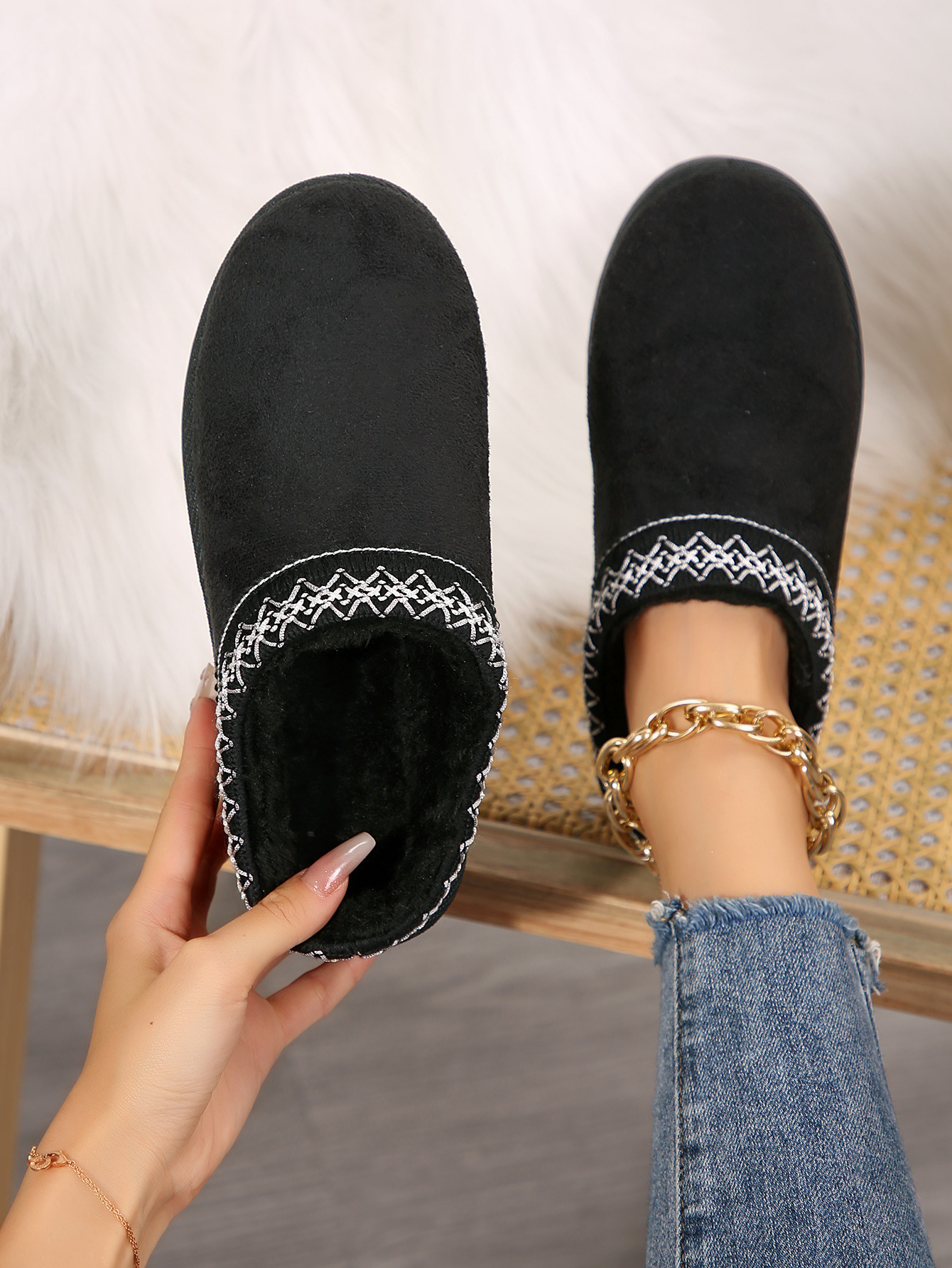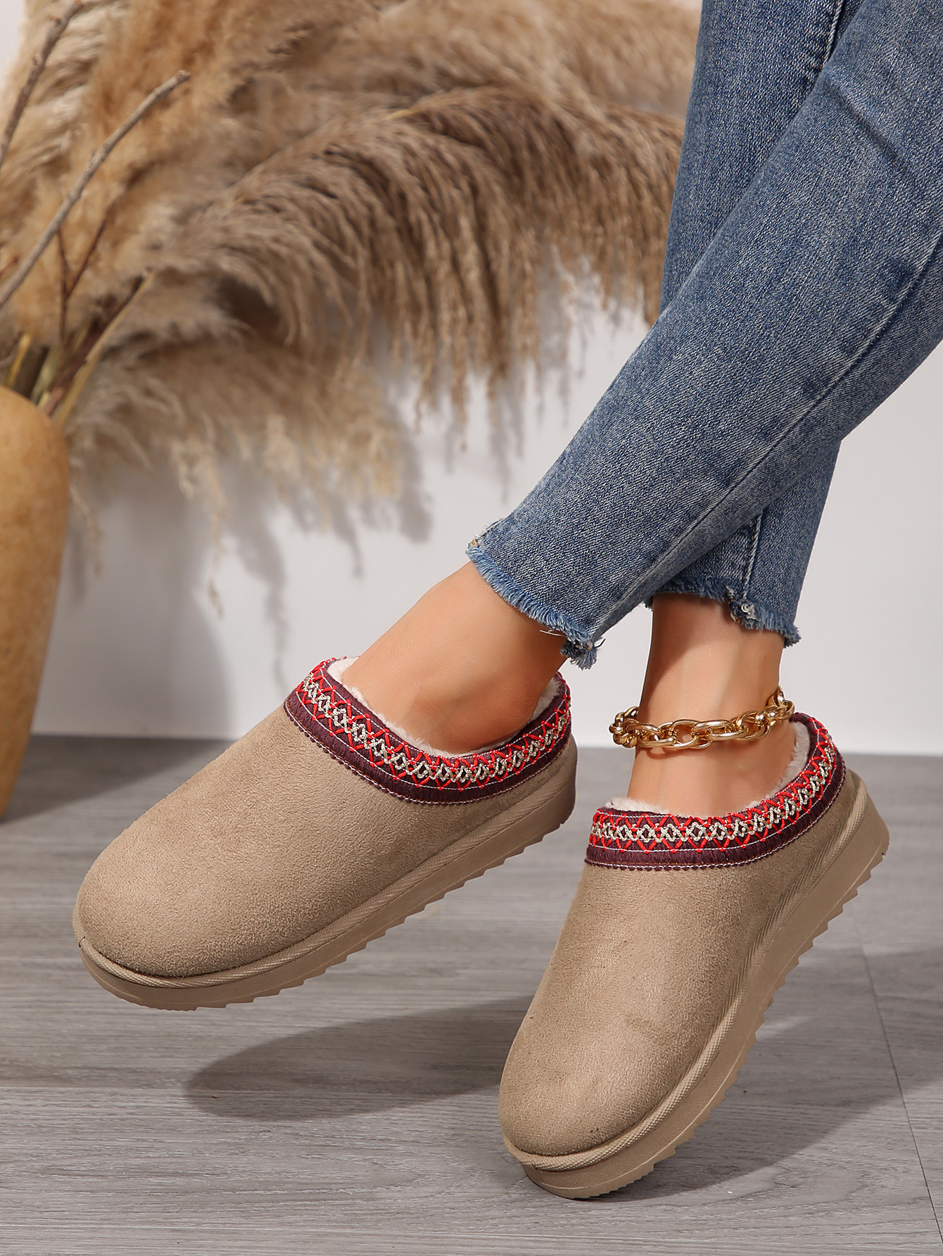 외부 크기 플러스 사이즈 마오 마오 반 슬리퍼 눈화 가을 및 겨울 새로운 43 크기 기모 따뜻한 두꺼운 슬리퍼스토어 가기