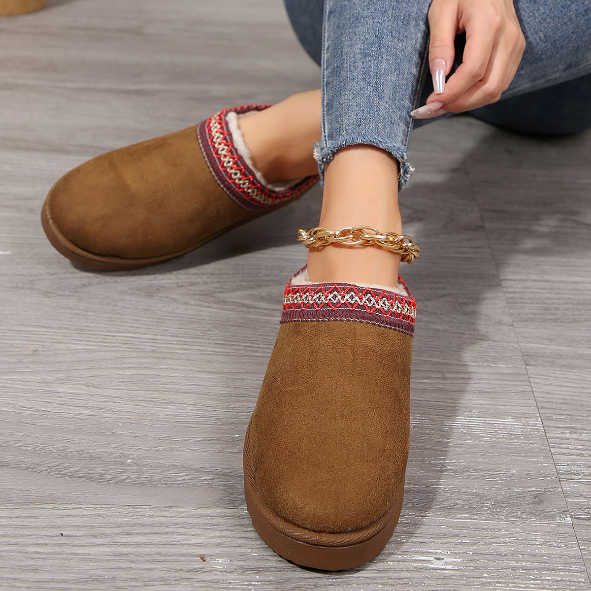 외부 크기 플러스 사이즈 마오 마오 반 슬리퍼 눈화 가을 및 겨울 새로운 43 크기 기모 따뜻한 두꺼운 슬리퍼