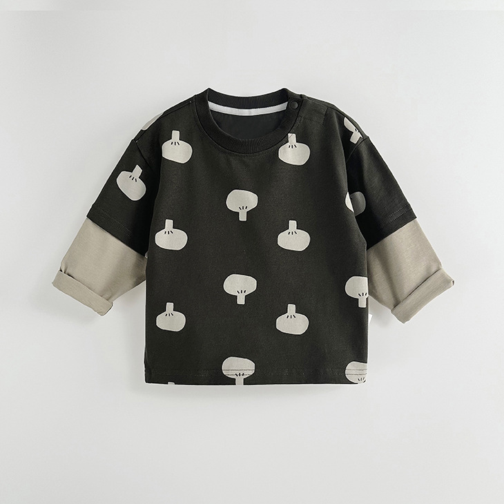 Muaqiaqia 북유럽 스타일 어린이 긴팔 티셔츠 소년 소녀 가짜 투피스 탑 아기 4YCT062