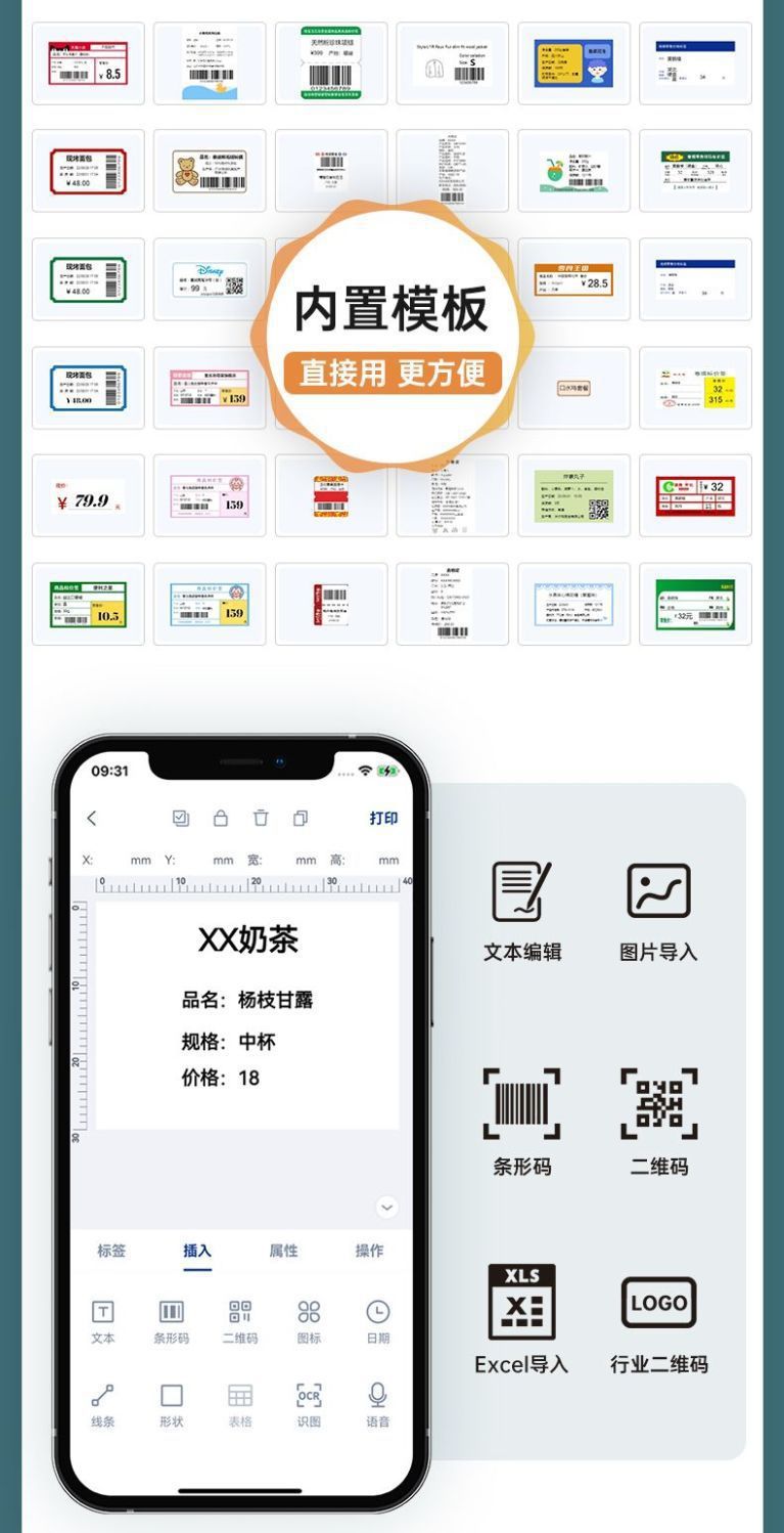 支持官方汉印五防标签或者非品牌通用小标签(标签尺寸25-50mm宽度,40mm纸卷直径以内)