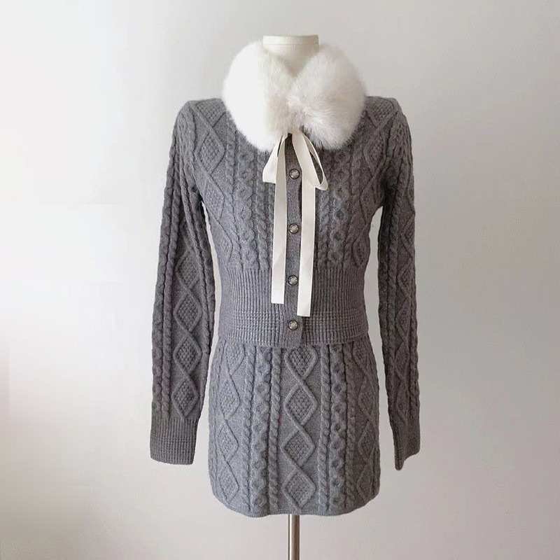 • 하이 퀄리티 삼나무 회색 치마 세트 (모피 칼라 포함)