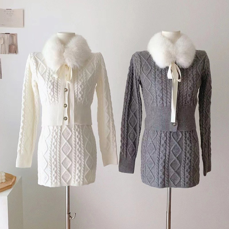 작은 착용 니트 세트 3 조각 봄과 가을 긴 소매 탑 엉덩이 스커트 여성용 두꺼운 스웨터스토어 가기