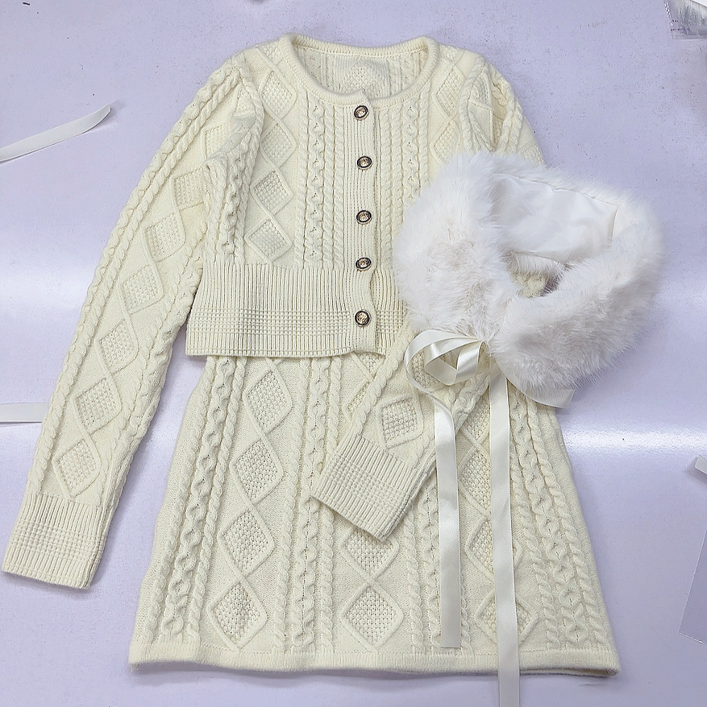 작은 착용 니트 세트 3 조각 봄과 가을 긴 소매 탑 엉덩이 스커트 여성용 두꺼운 스웨터