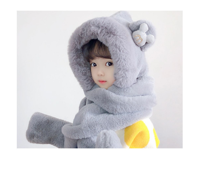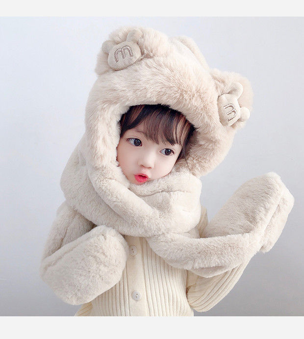 어린이 모자 3 조각 모조 렉스 토끼 모피 소녀 두꺼운 기모 모자 스카프 아기 곰 귀여운 가을과 겨울스토어 가기
