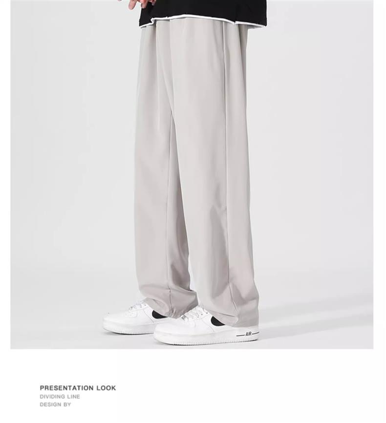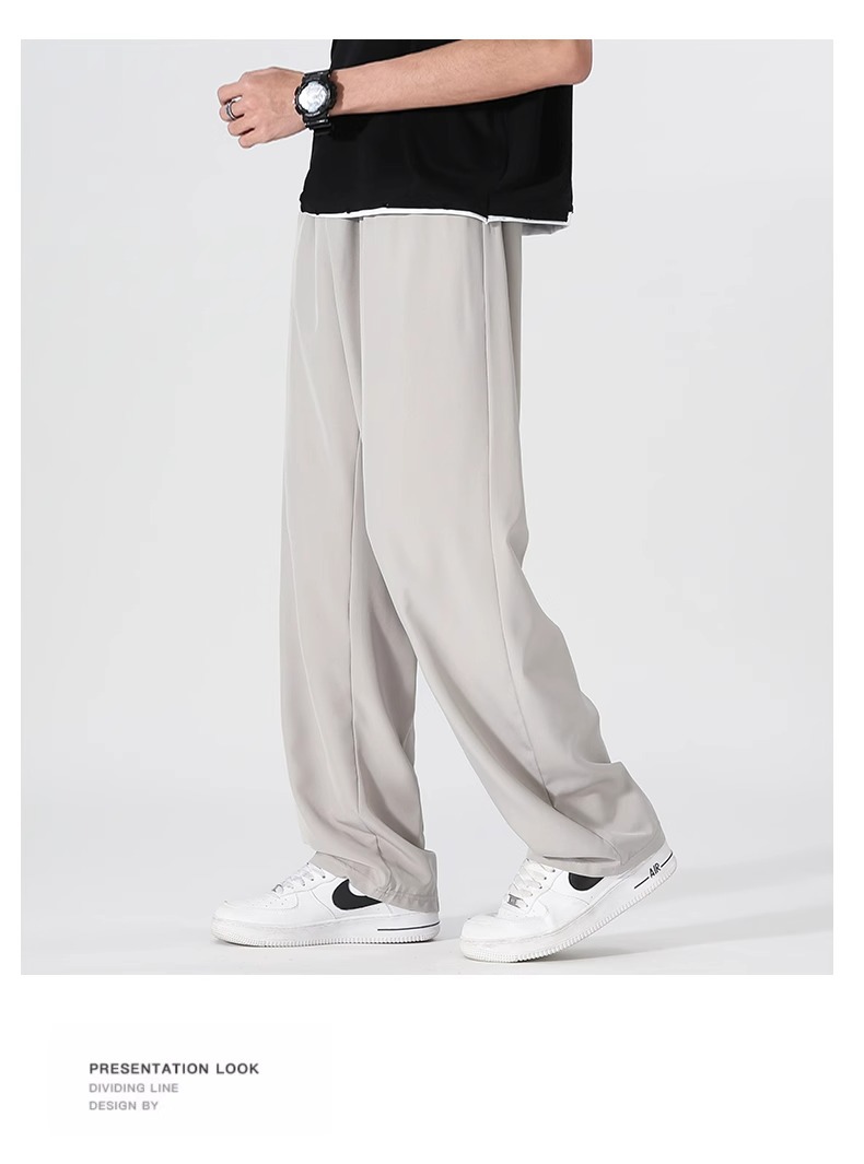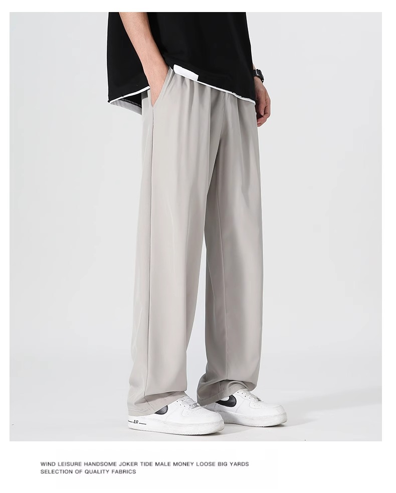 • 아이스 실크 스트레이트 다리 바지 라이트 그레이