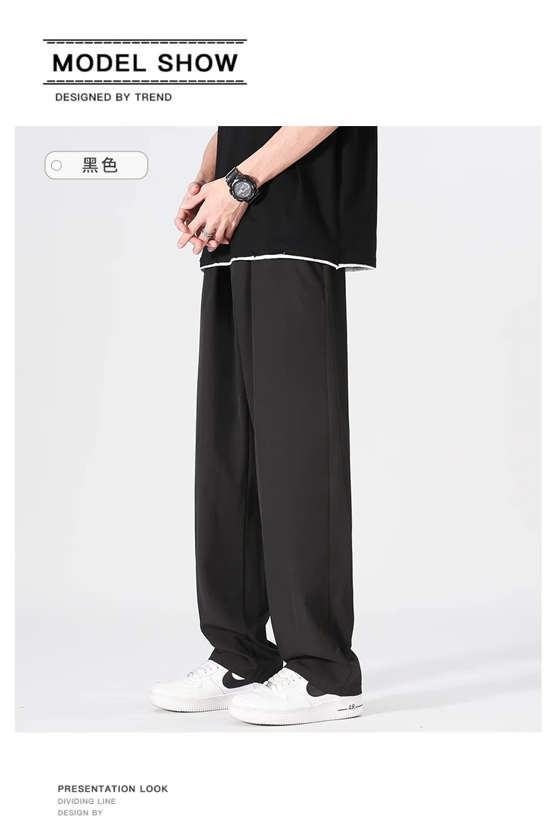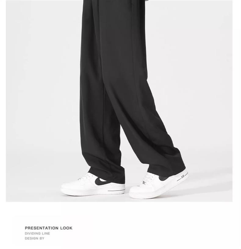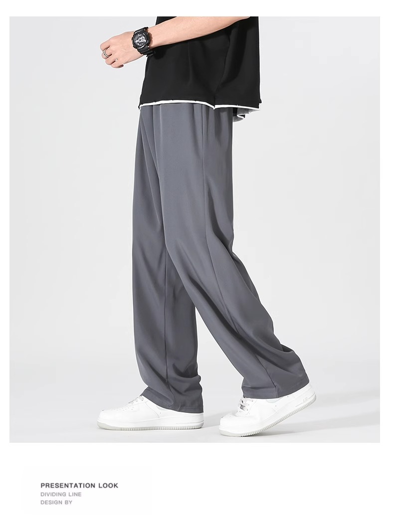 여름 얇은 아이스 실크 캐주얼 바지 남성용 느슨한 플러스 사이즈 스트레이트 와이드 레그 랩 빠른 건조 통기성 스포츠 긴 바지스토어 가기