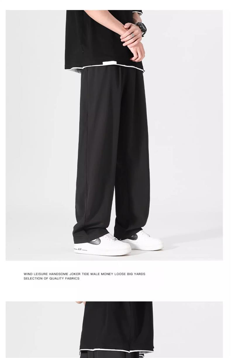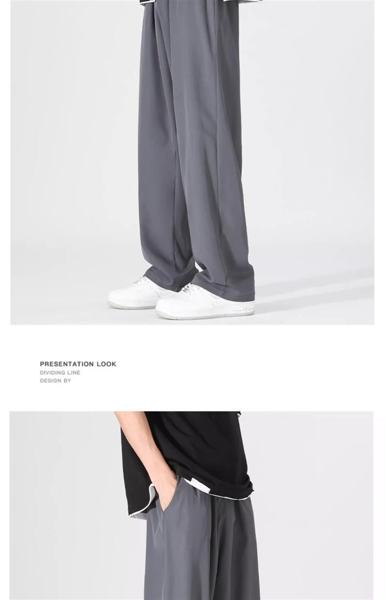 여름 얇은 아이스 실크 캐주얼 바지 남성용 느슨한 플러스 사이즈 스트레이트 와이드 레그 랩 빠른 건조 통기성 스포츠 긴 바지