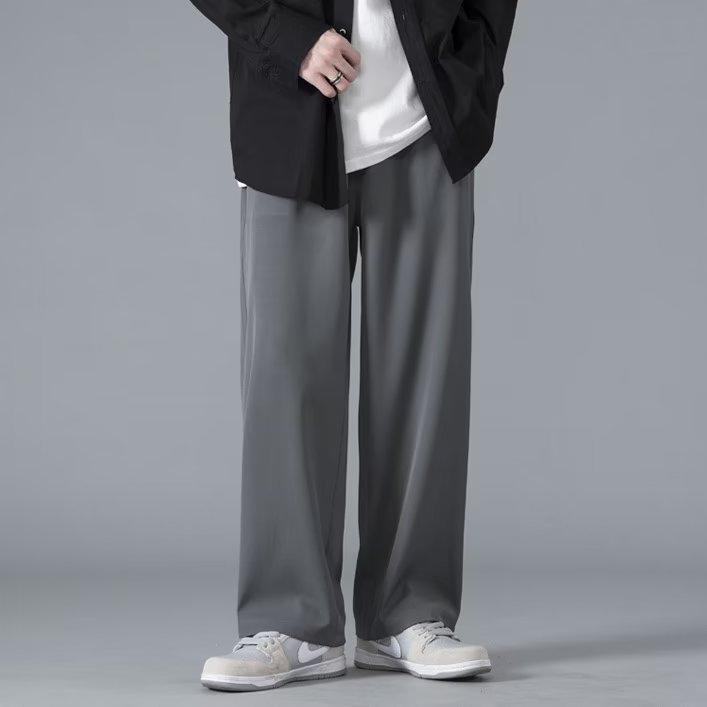 • 아이스 실크 스트레이트 다리 바지 다크 그레이