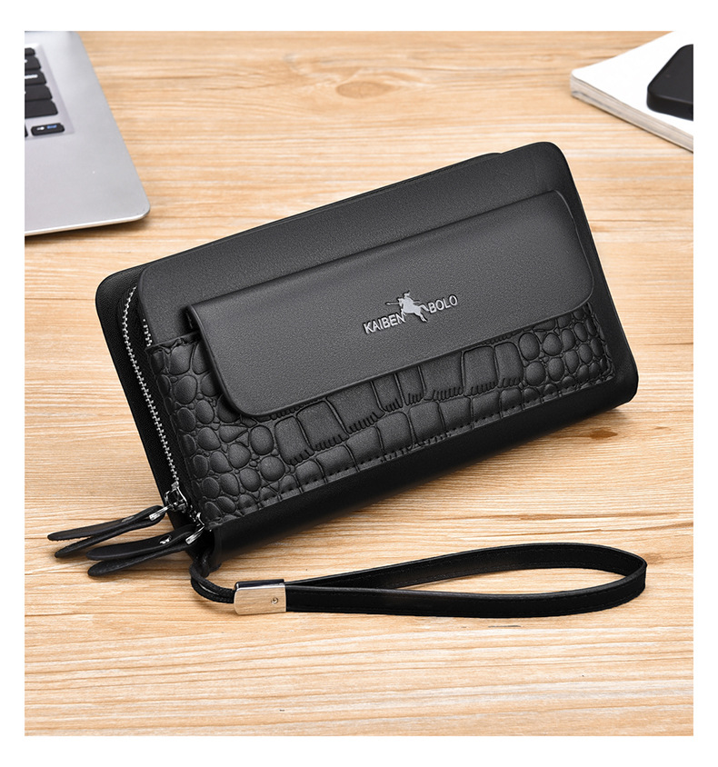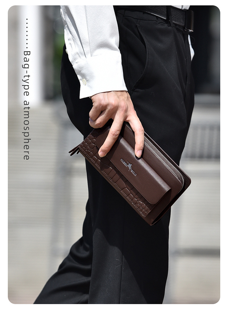 국경 간 비즈니스 남성 롱 클러치 백 남성 대용량 내마모성 멀티 카드 더블 지퍼 남성 하이 엔드 센스 지갑