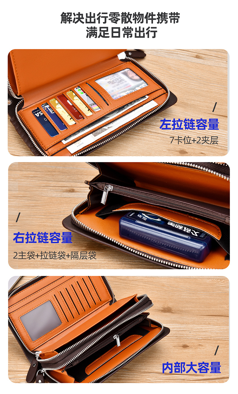 국경 간 비즈니스 남성 롱 클러치 백 남성 대용량 내마모성 멀티 카드 더블 지퍼 남성 하이 엔드 센스 지갑스토어 가기