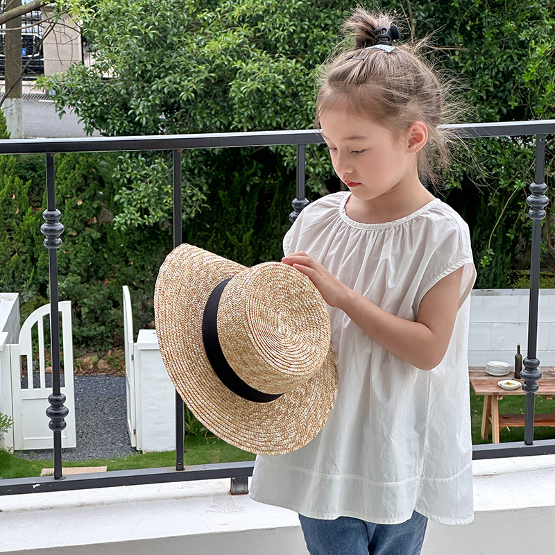 에모 베이베이 중대형 아동용 스플라이싱 디자인, 앞이 짧고 뒤가 긴 슬릿, 패셔너블한 오프숄더 조끼, 민소매 화이트 셔츠스토어 가기