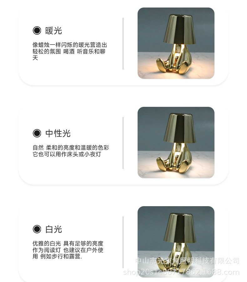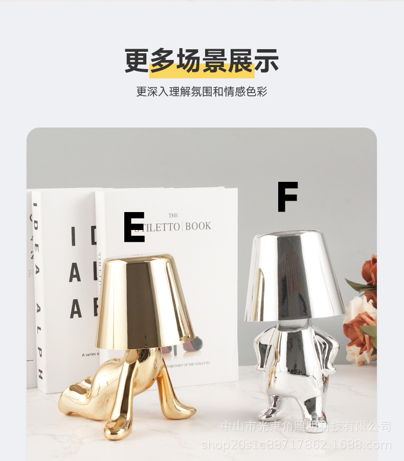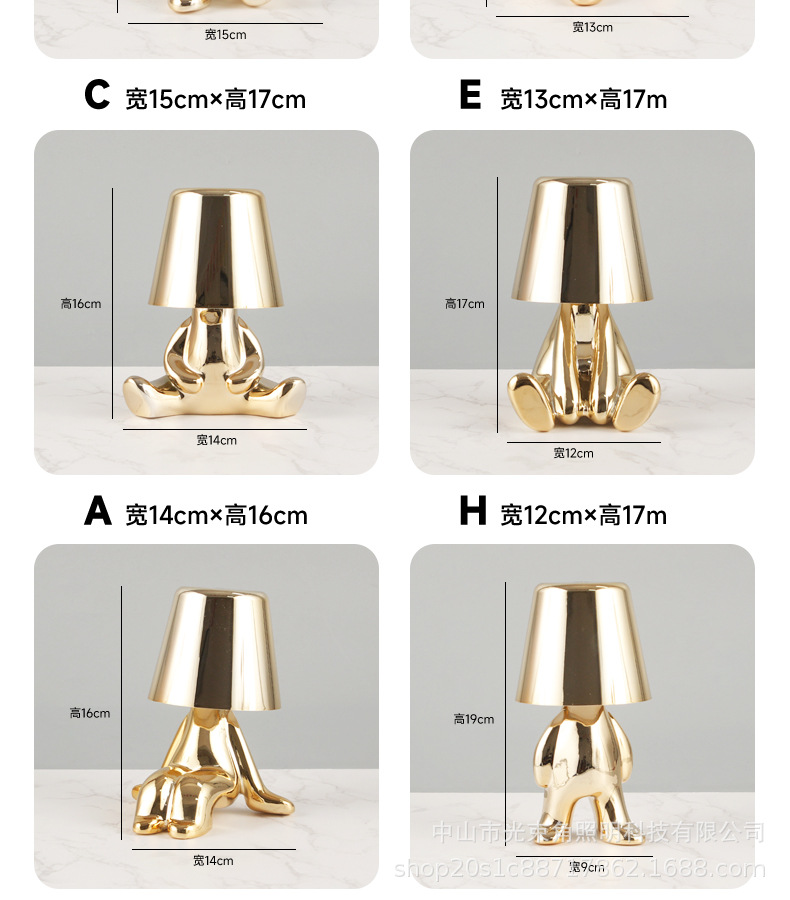 국경 간 재고 황금 남자 장식 나이트 라이트 바 카페 장식 분위기 램프 누워 격자 테이블 램프에 대해 생각스토어 가기