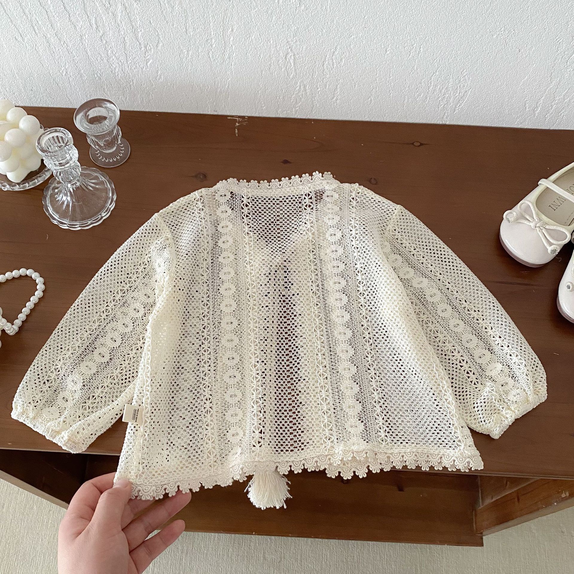 여자 솔리드 컬러 에어컨 셔츠 여름 2021 아동 의류 아기 소녀 태양 보호 모기 방지 재킷 탑 아기 여름 얇은