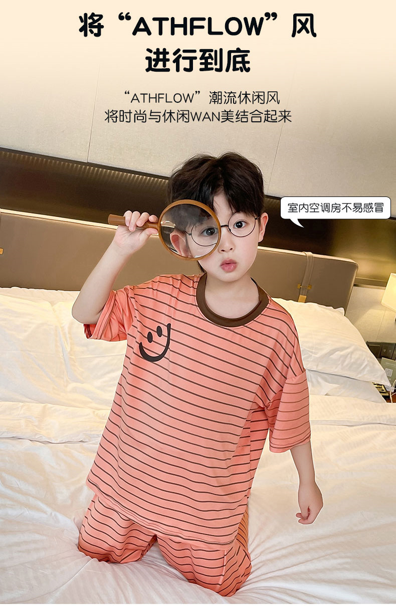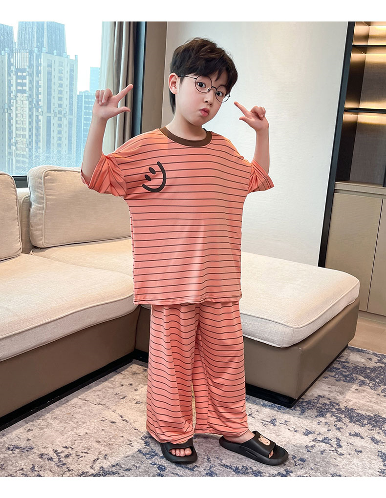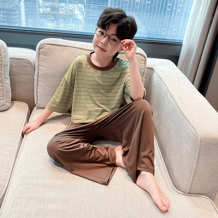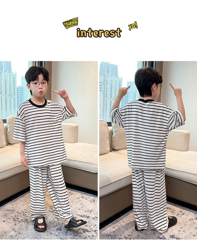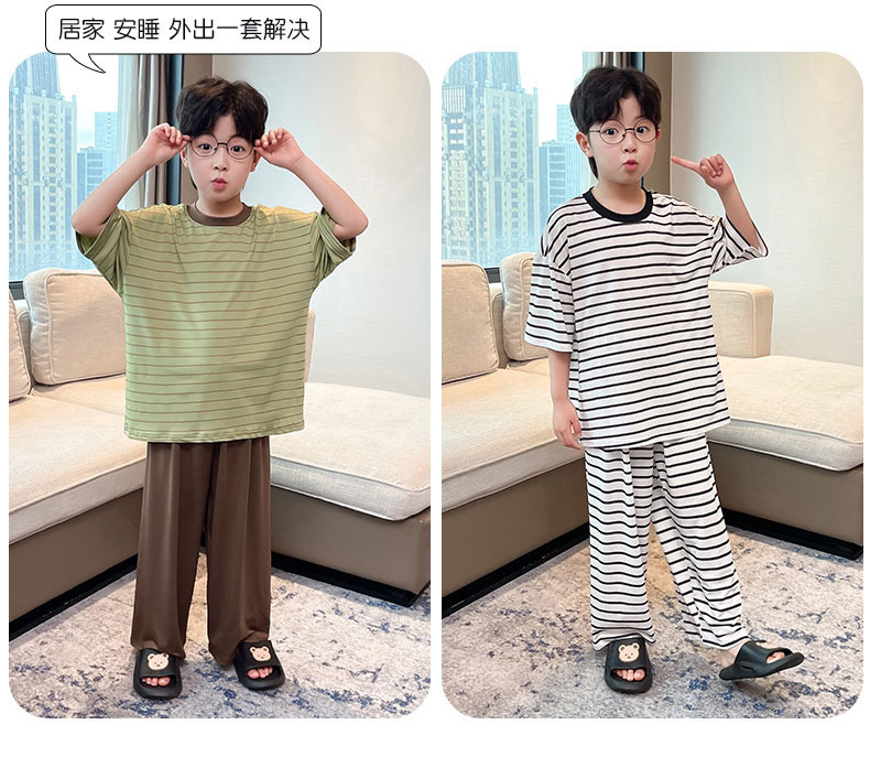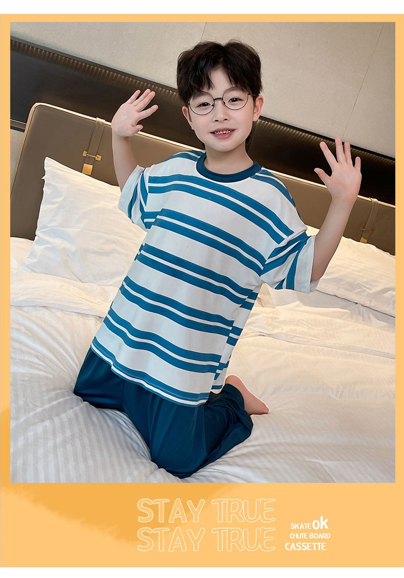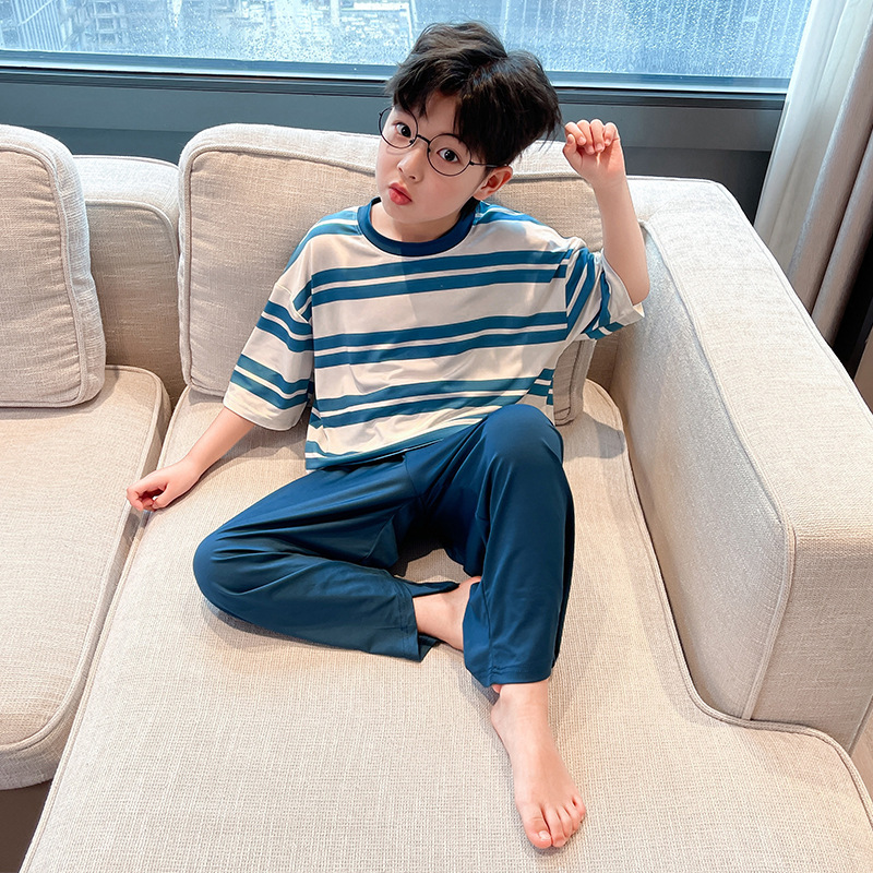 어린이 착용 소년의 여름 착용 모달 줄무늬 잠옷 홈 의류 세트 여름 얇은 소년의 큰 소년의 에어컨 옷스토어 가기