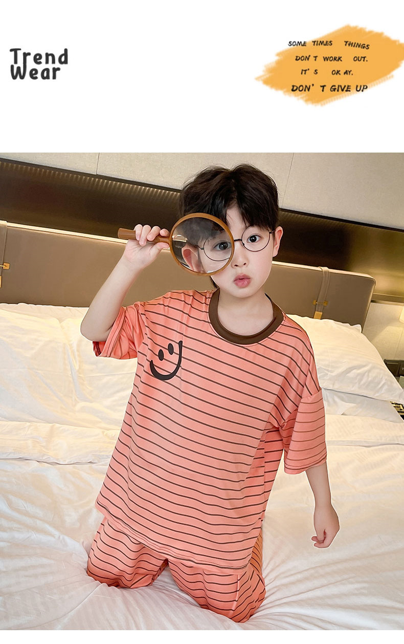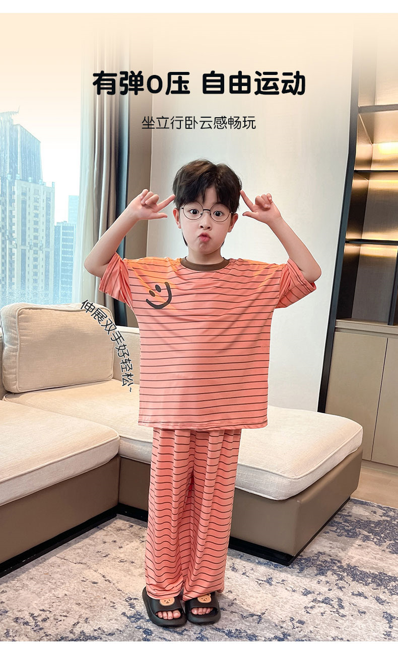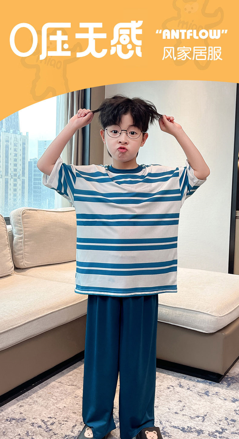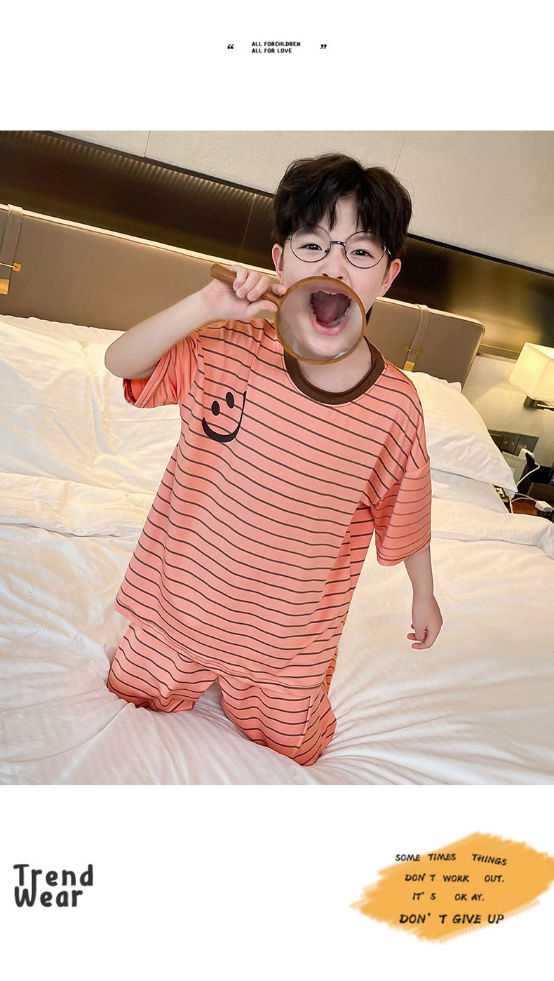 어린이 착용 소년의 여름 착용 모달 줄무늬 잠옷 홈 의류 세트 여름 얇은 소년의 큰 소년의 에어컨 옷스토어 가기