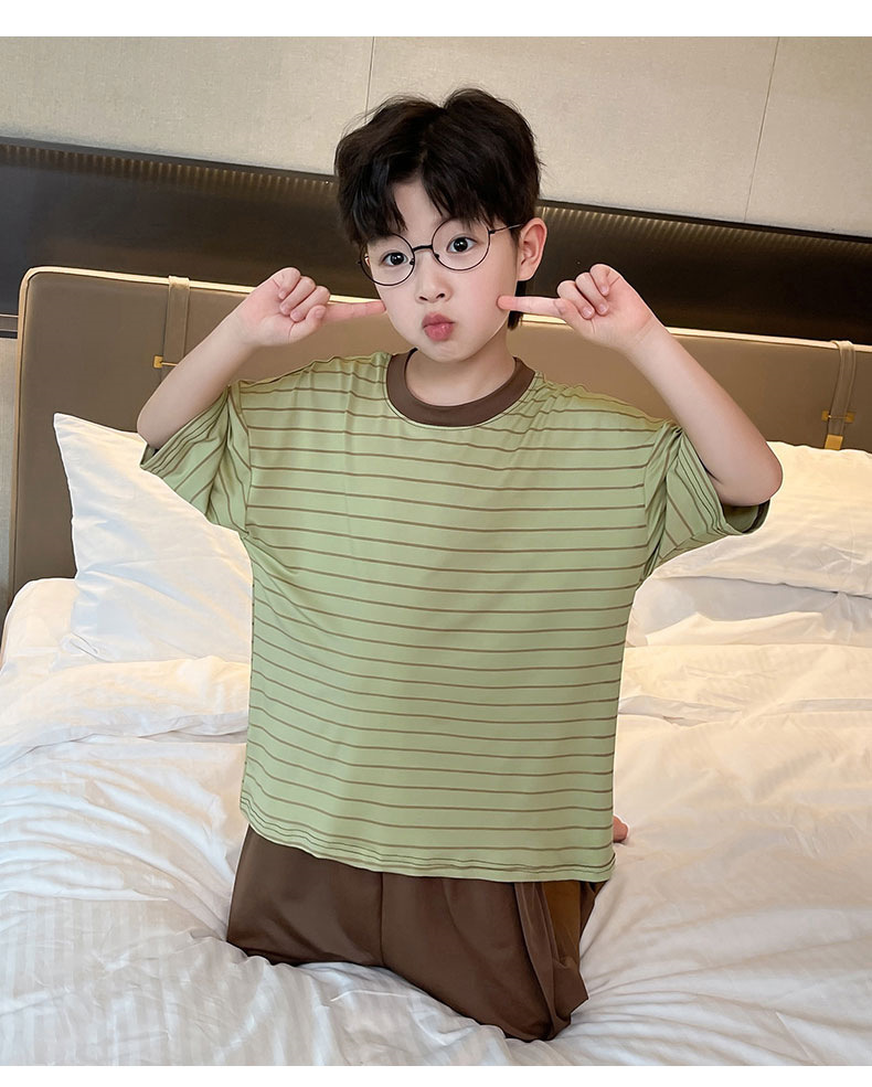 어린이 착용 소년의 여름 착용 모달 줄무늬 잠옷 홈 의류 세트 여름 얇은 소년의 큰 소년의 에어컨 옷