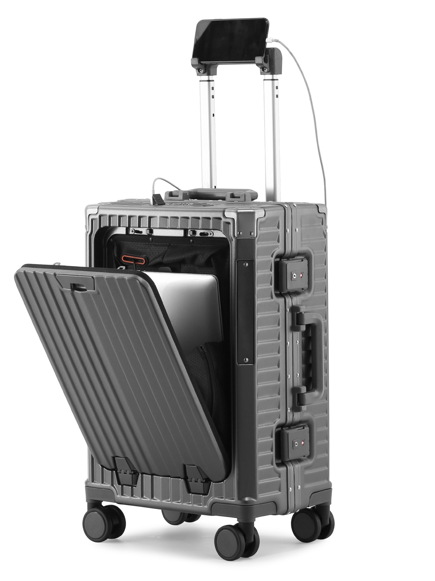 새로운 전면 개방형 알루미늄 프레임 여행가방 20inch 기내 반입 가능 여성용 여행가방 24inch 대용량 트롤리 가방 남성용