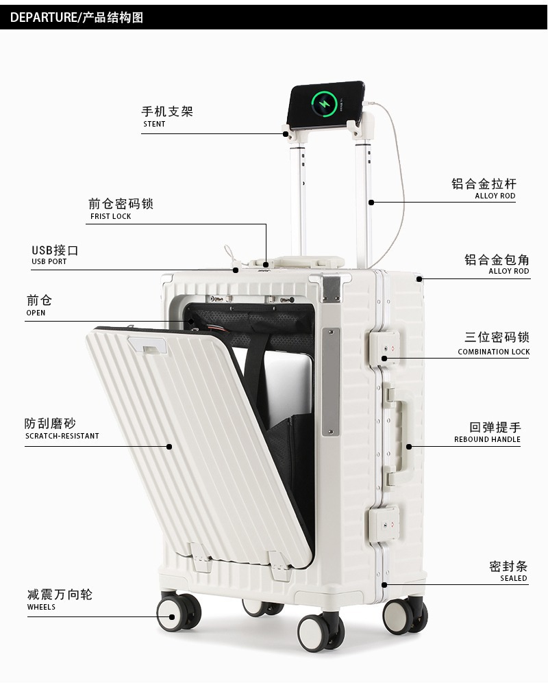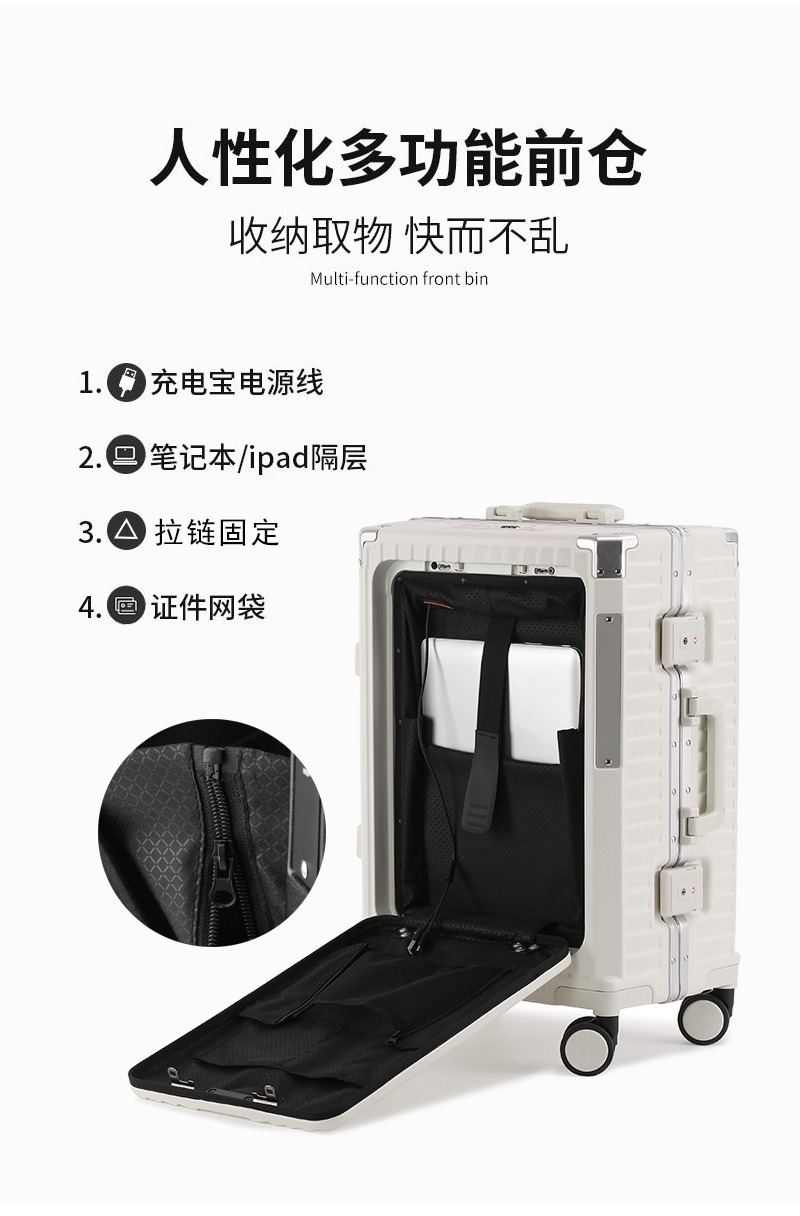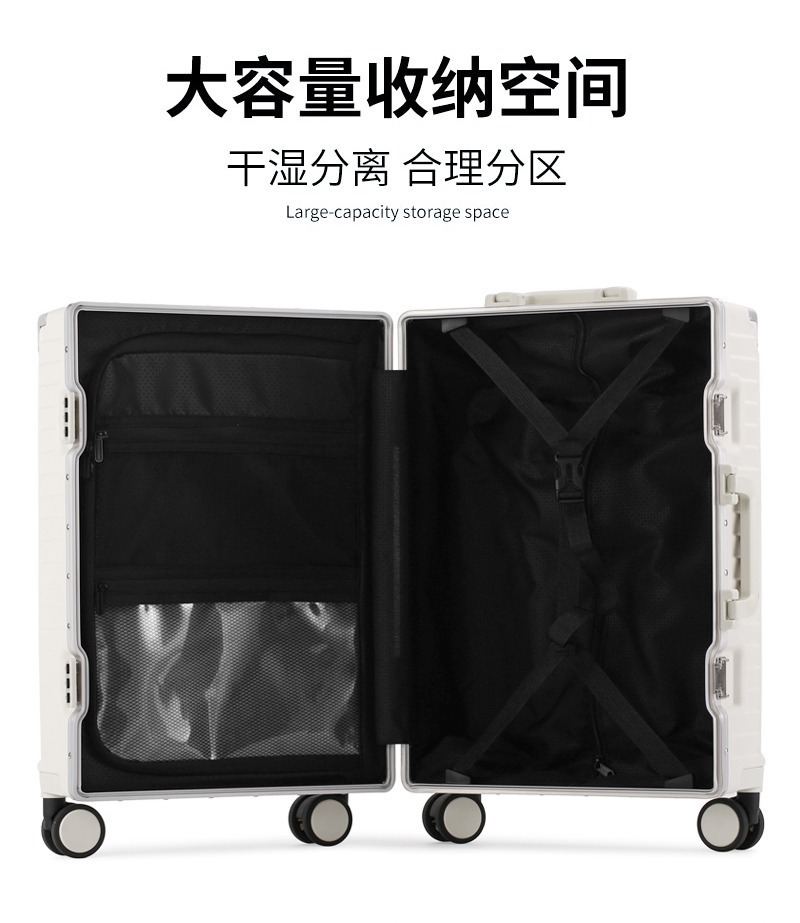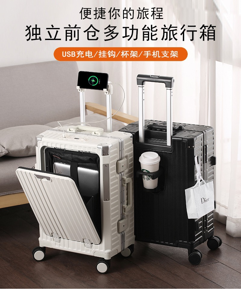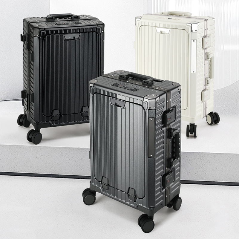 새로운 전면 개방형 알루미늄 프레임 여행가방 20inch 기내 반입 가능 여성용 여행가방 24inch 대용량 트롤리 가방 남성용스토어 가기