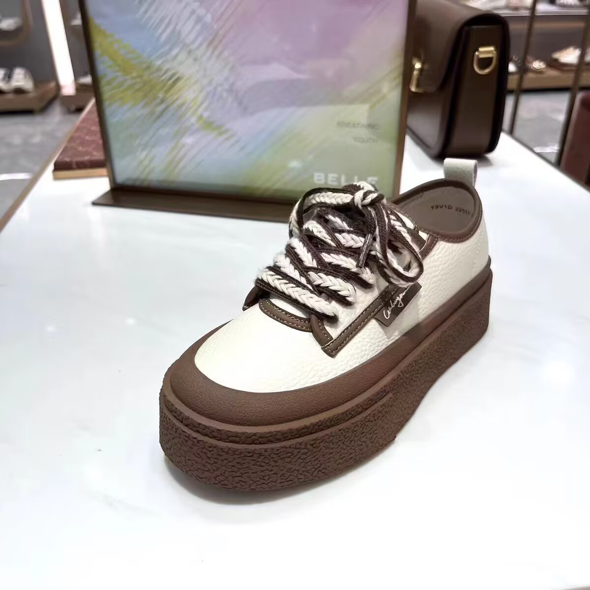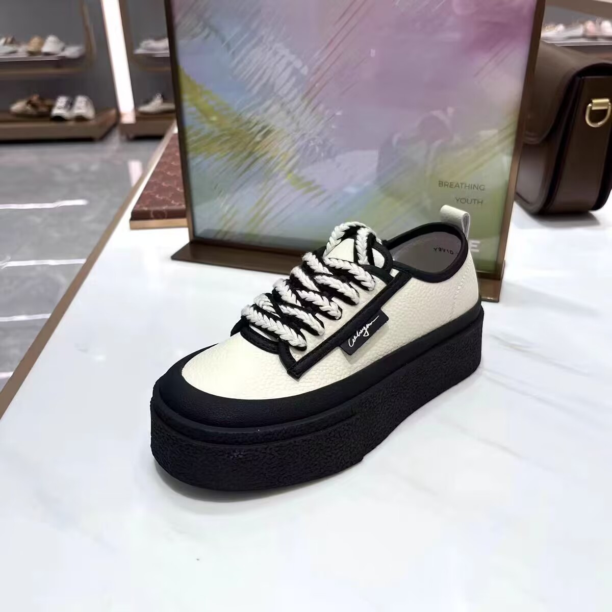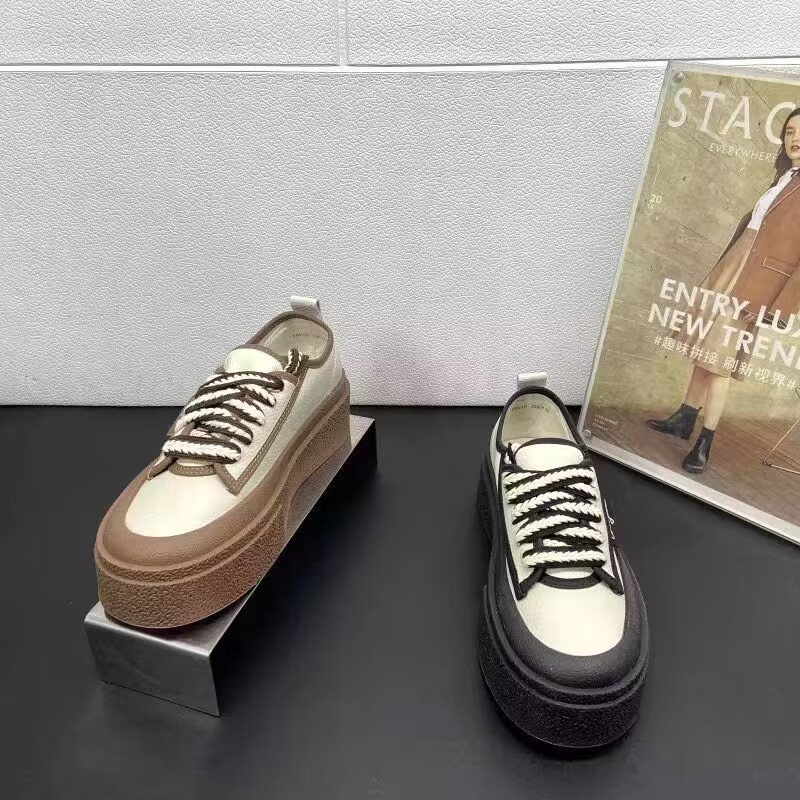 인터넷 유명한 두꺼운 밑창 작은 흰색 신발 봄과 가을 여성을위한 2024 새로운 스타일의 작은 향기로운 스타일 라운드 헤드 레이스 업 한국식 다목적 캐주얼 스케이트 신발스토어 가기