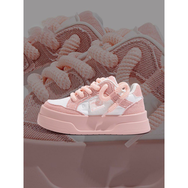 인터넷 유명한 두꺼운 밑창 작은 흰색 신발 봄과 가을 여성을위한 2024 새로운 스타일의 작은 향기로운 스타일 라운드 헤드 레이스 업 한국식 다목적 캐주얼 스케이트 신발