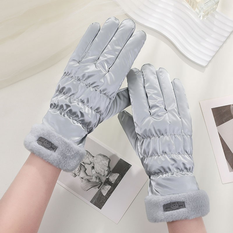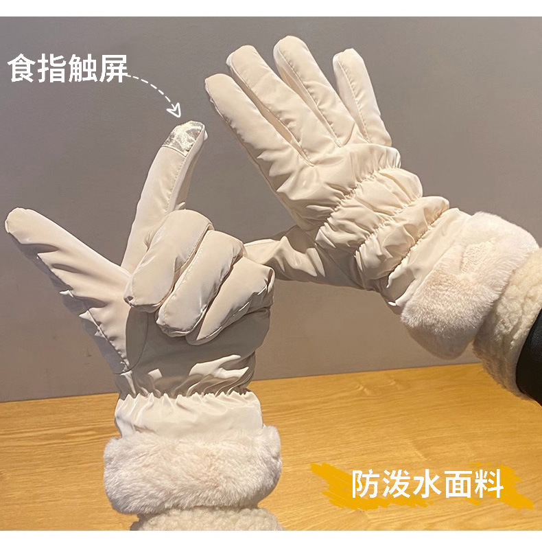 겨울 따뜻한 장갑 터치 스크린 학생 여자의 두꺼운 코튼 다운 사이클링 방추형 귀여운 방풍 기모 스키 장갑