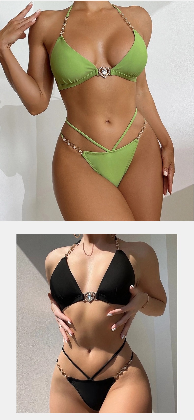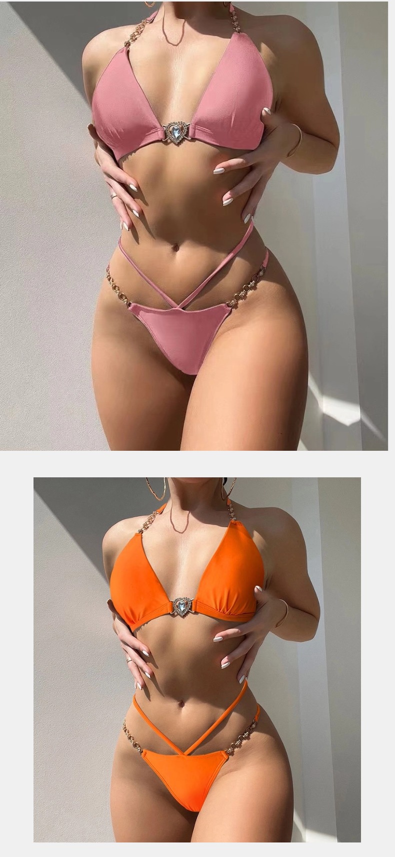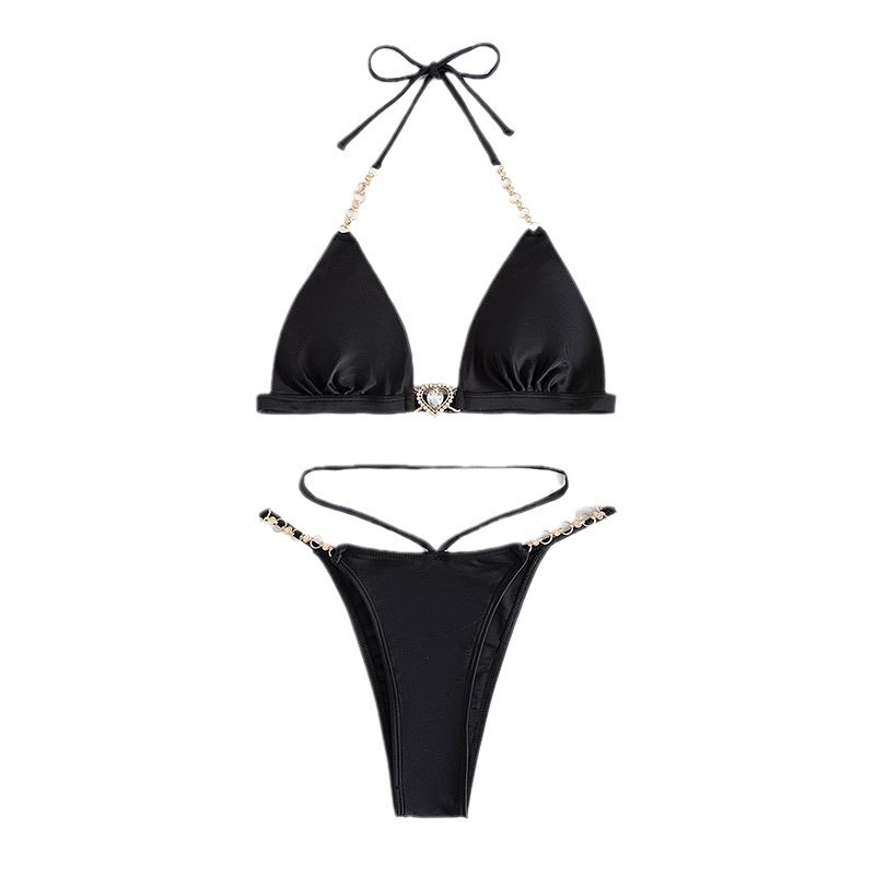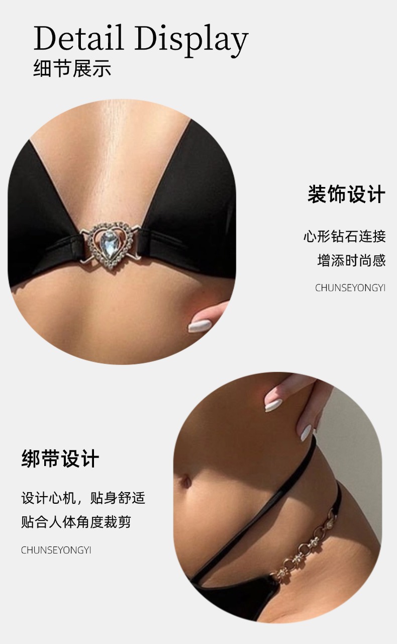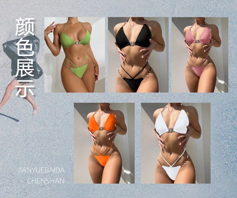 유럽과 미국의 딥 V 스플릿 수영복 새로운 하이 엔드 비키니 푸시 업 백리스 체인 스트랩 순수한 욕망 수영복 여성
