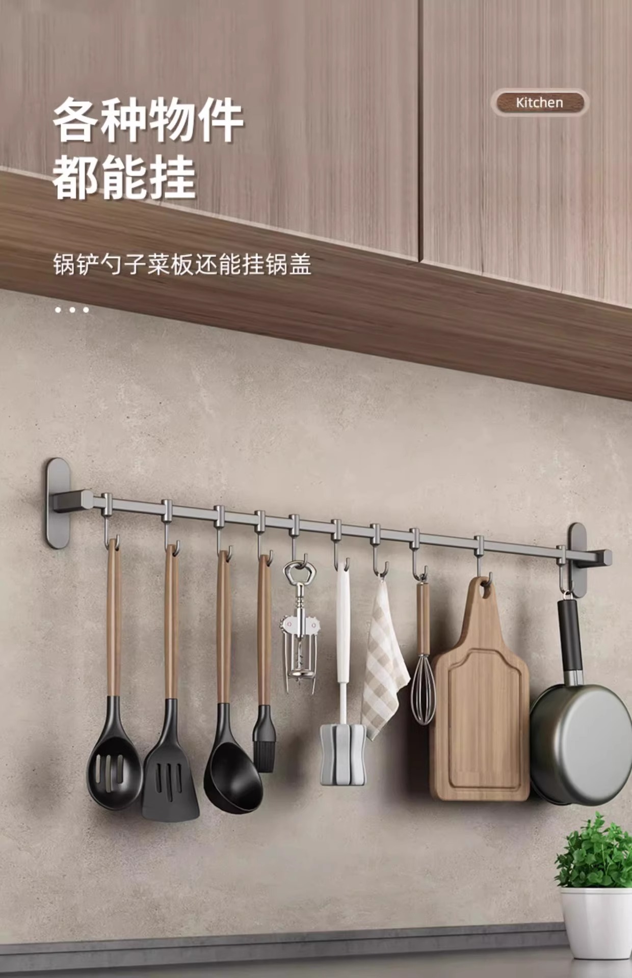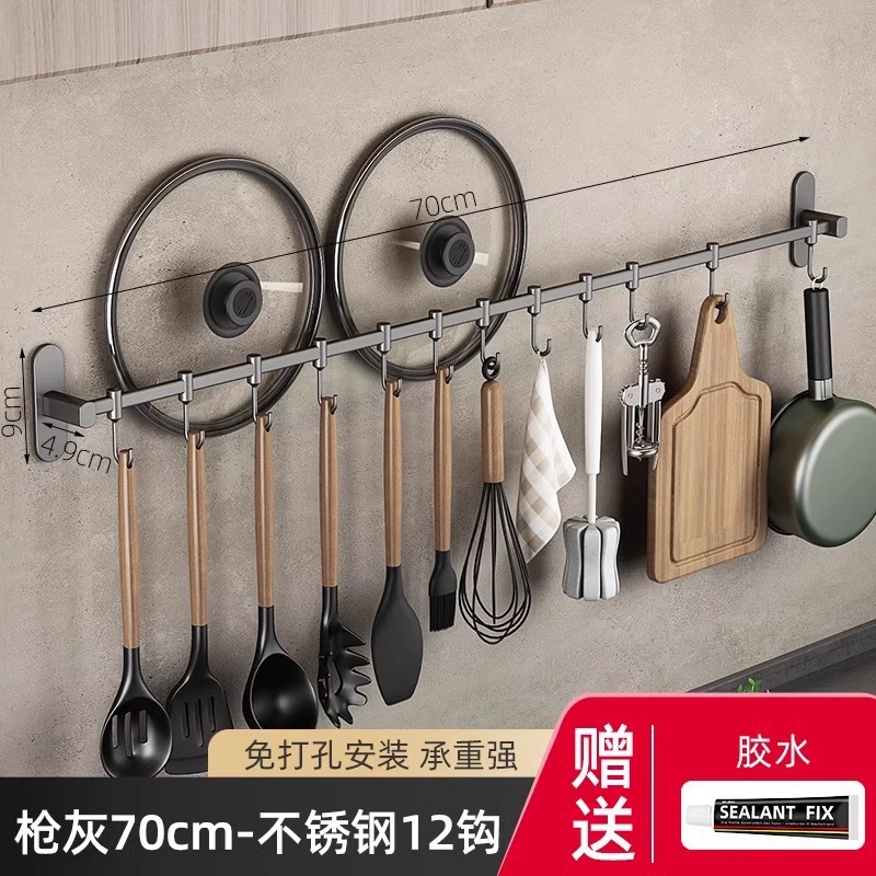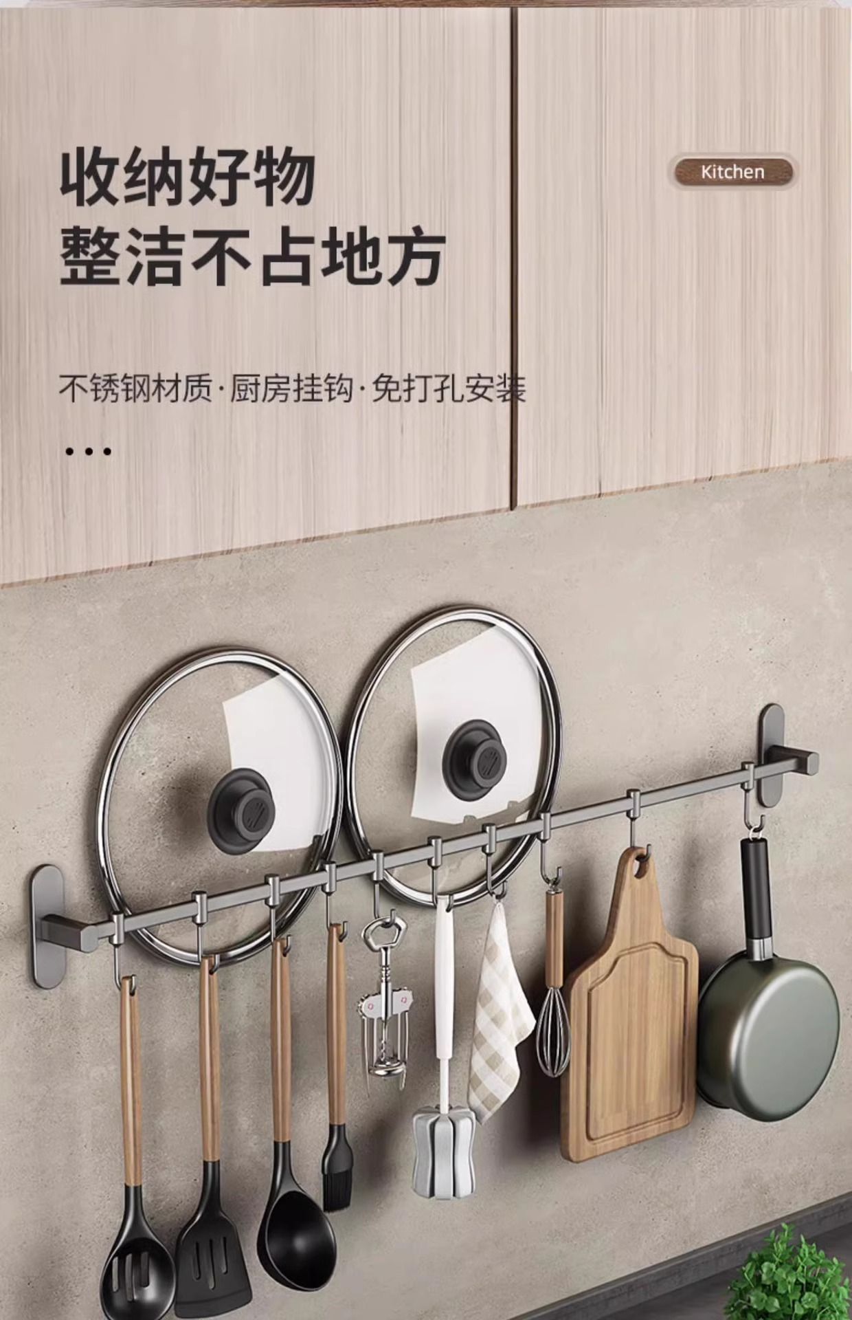 주방 후크 펀치 무료 교수형 막대 주방 보관 랙 슬리퍼 스푼 랙 스테인레스 스틸 후크 벽걸이 보관