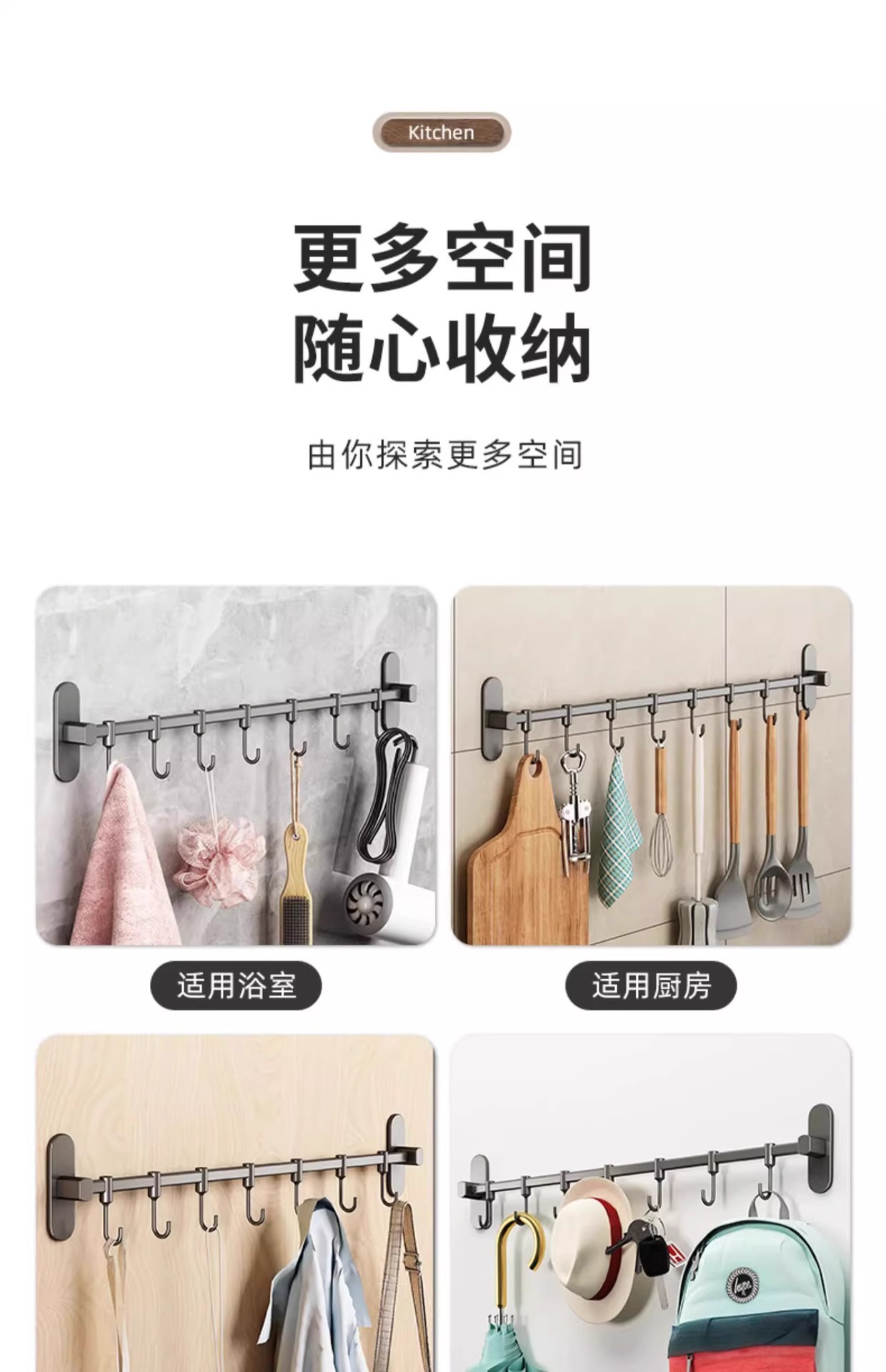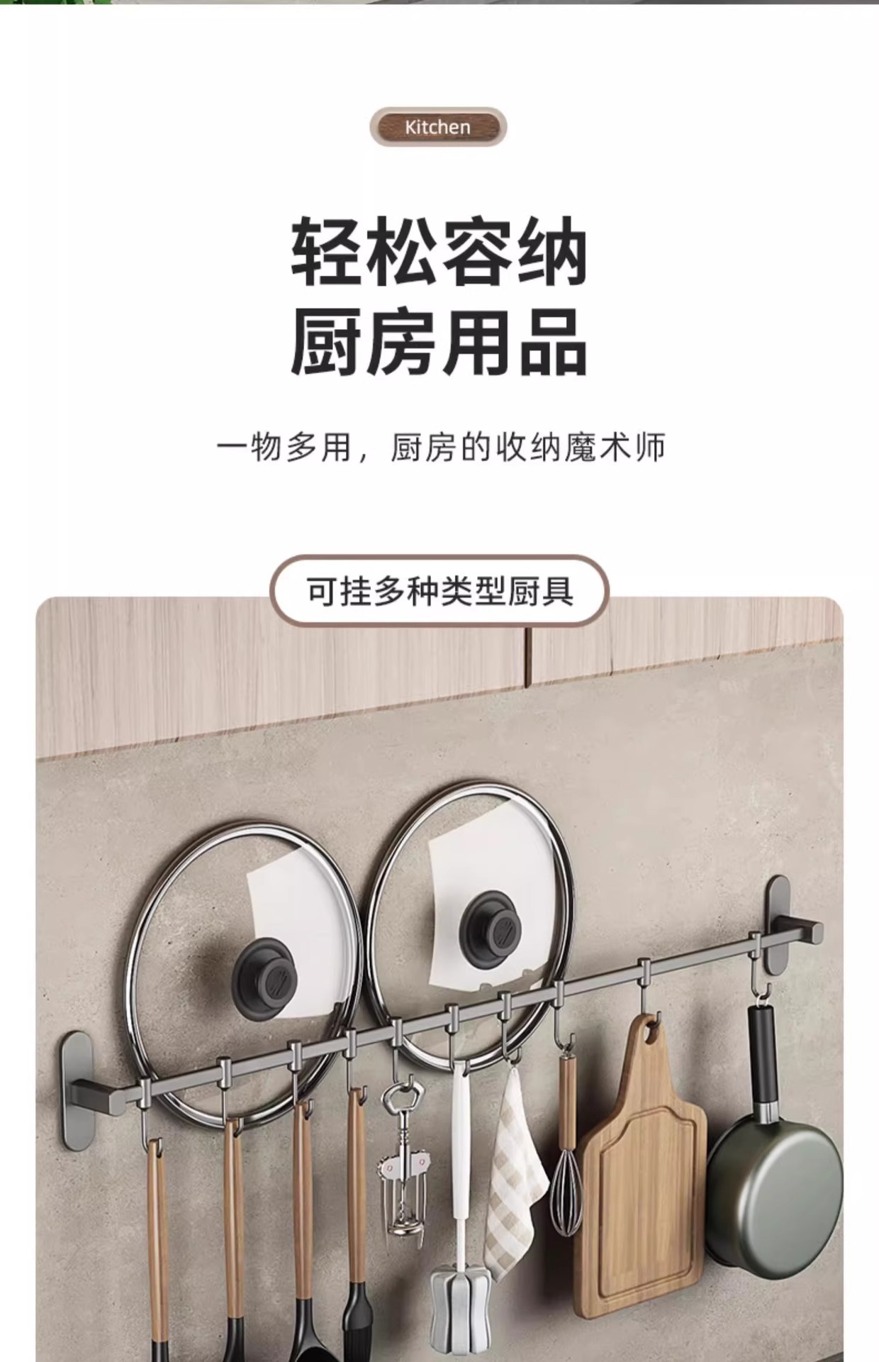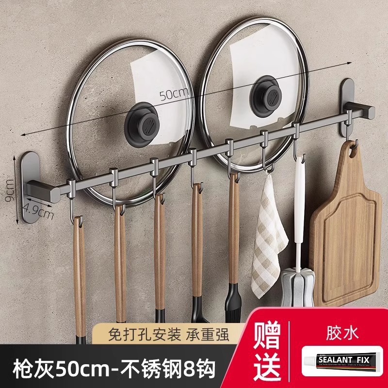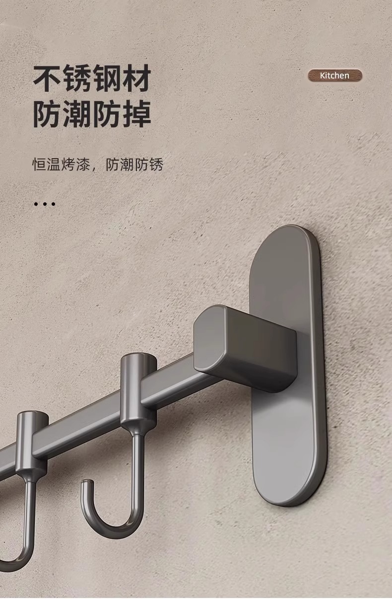 주방 후크 펀치 무료 교수형 막대 주방 보관 랙 슬리퍼 스푼 랙 스테인레스 스틸 후크 벽걸이 보관