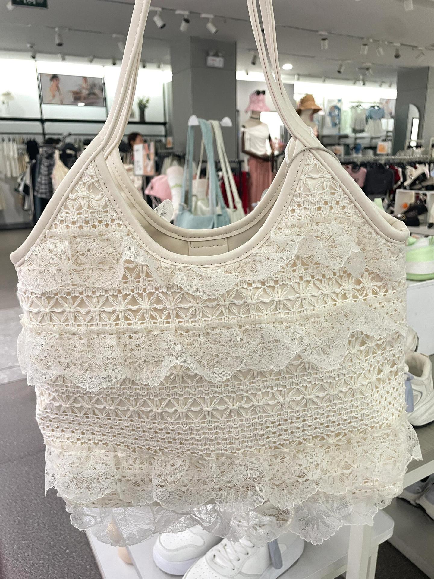 Sanfortote 여름 레저 휴가 요정 스타일 레이스 메쉬 언더암 어깨 가방 여성용 가방 대용량스토어 가기