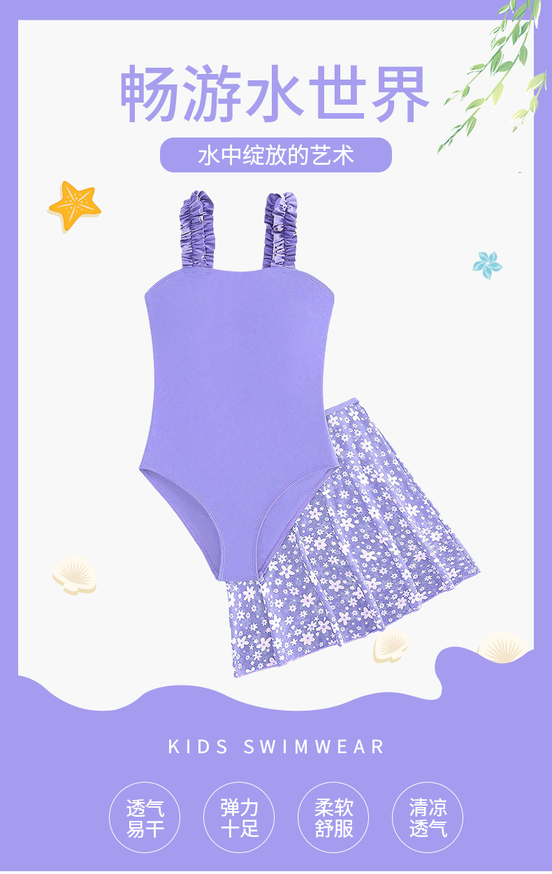 2025년 신상 여아 수영복 원피스 아동 분리형 스커트 수영복 중대형 아동 해외 수출용 여아 수영복