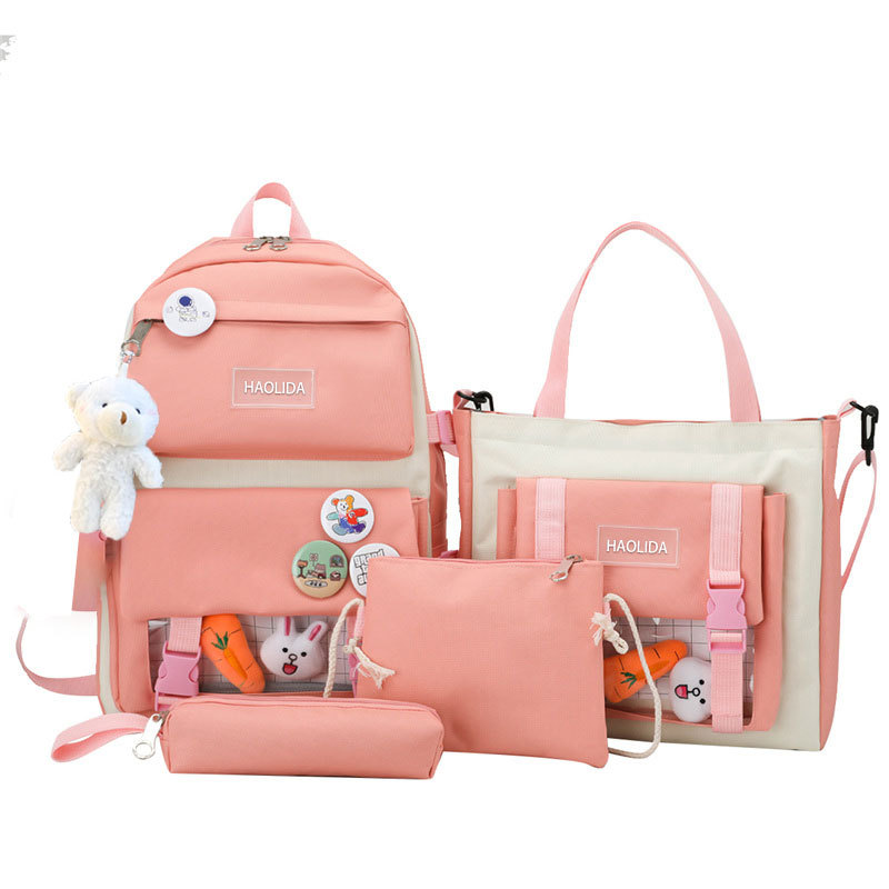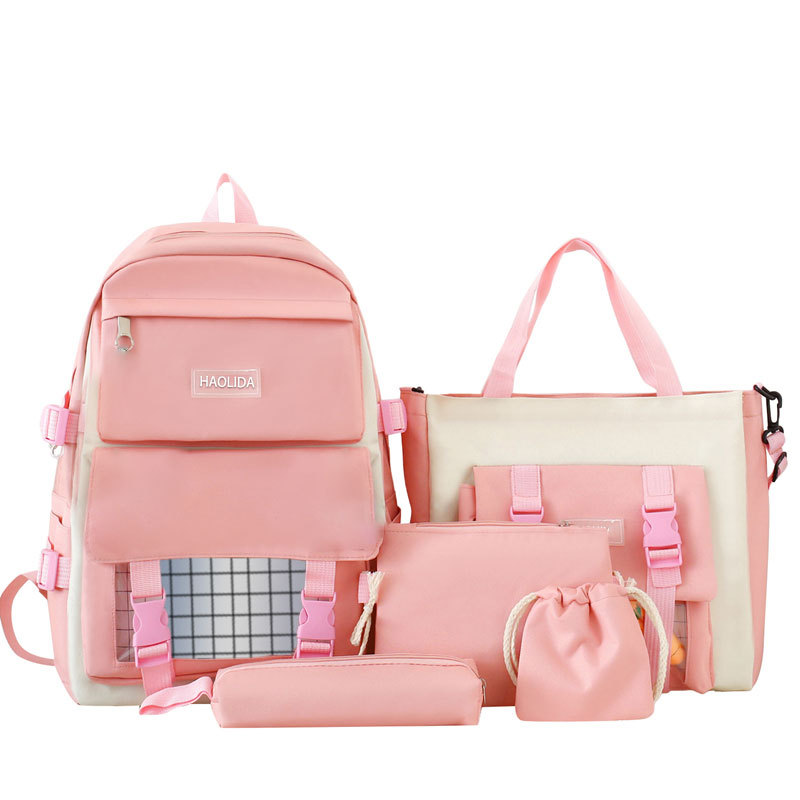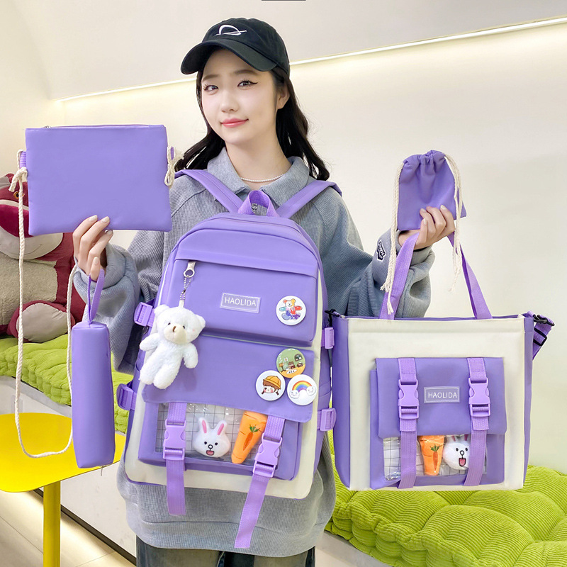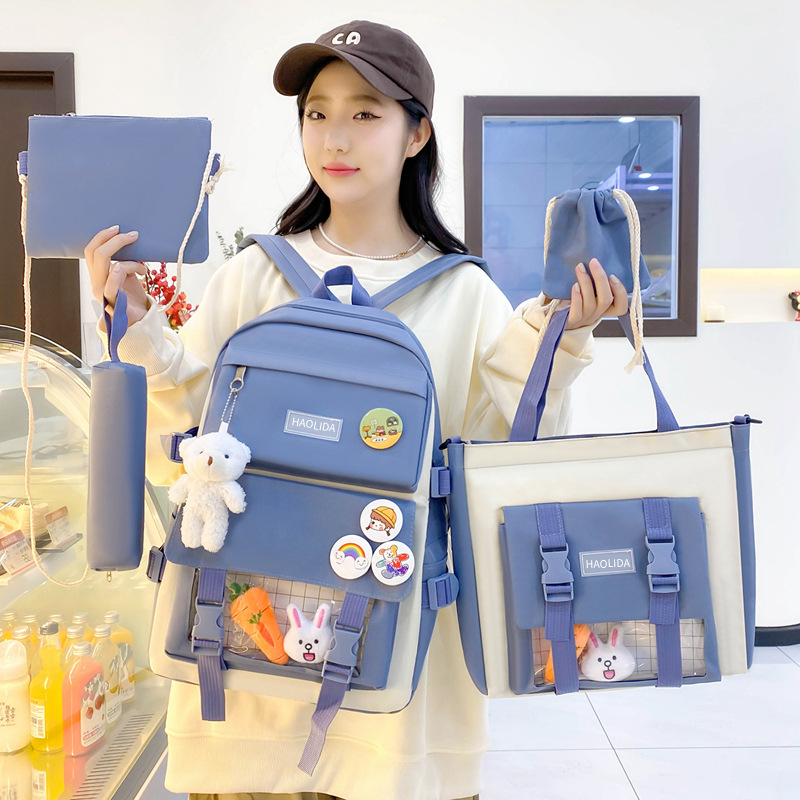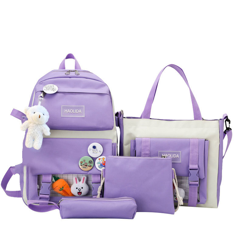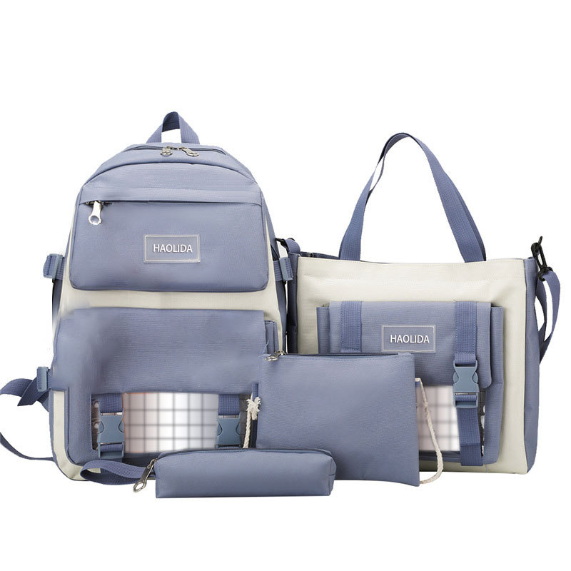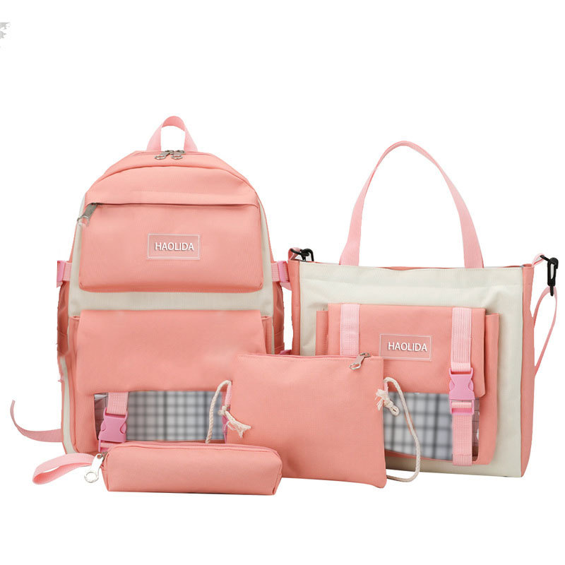 국경 4 종 학생 스쿨백 배낭 중학교 고등학교 고등학교 여학생 5 종 배낭 대용량 여행 가방