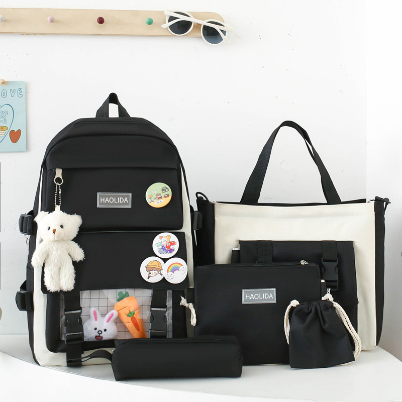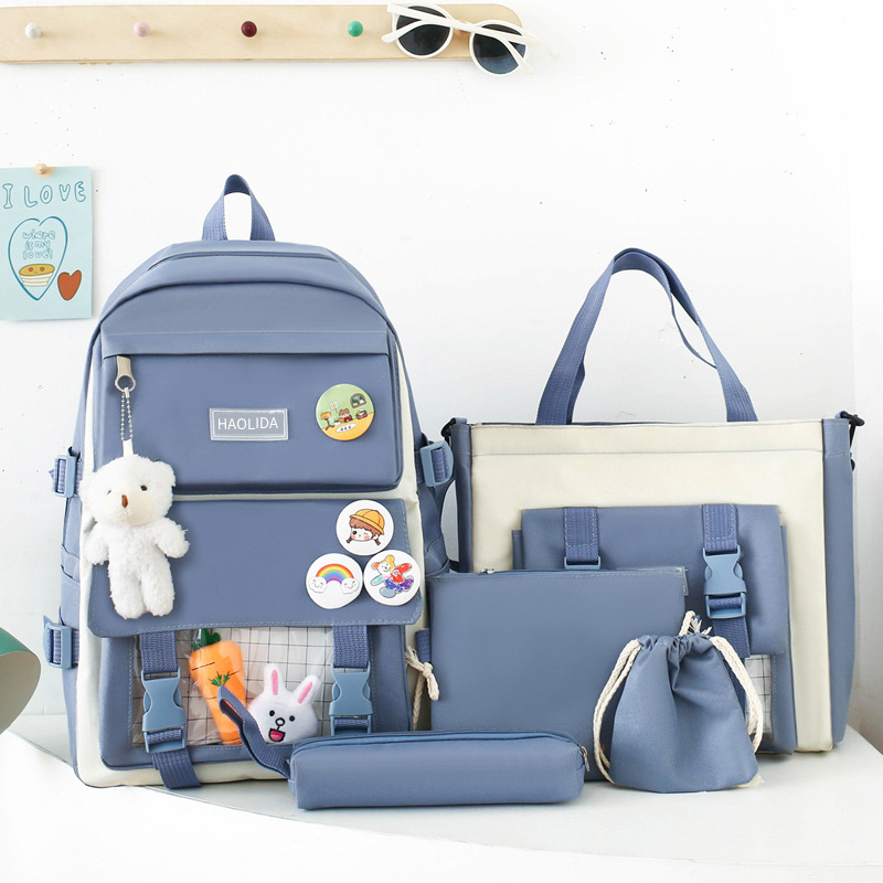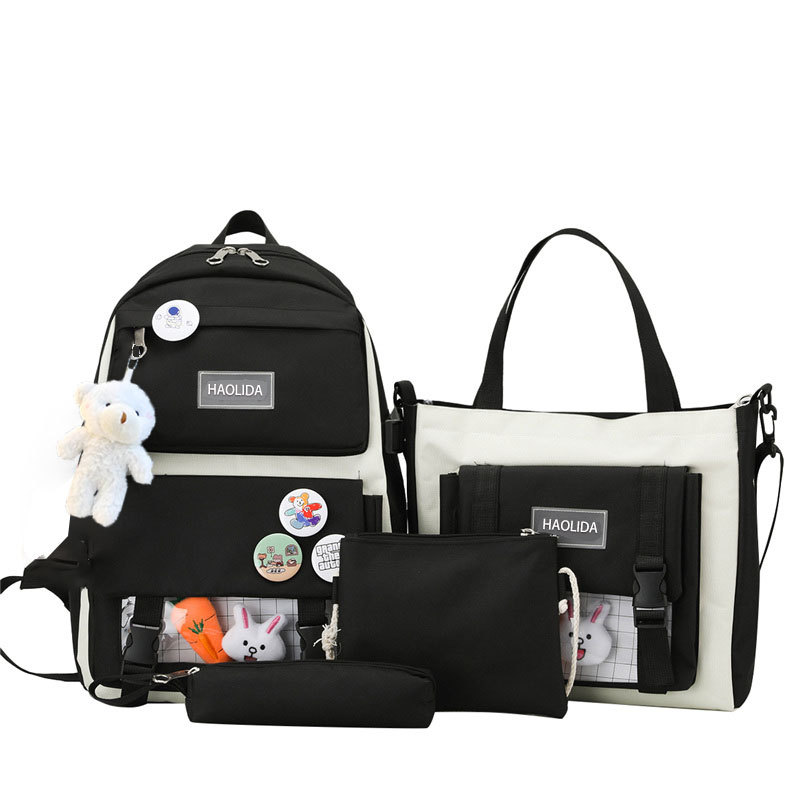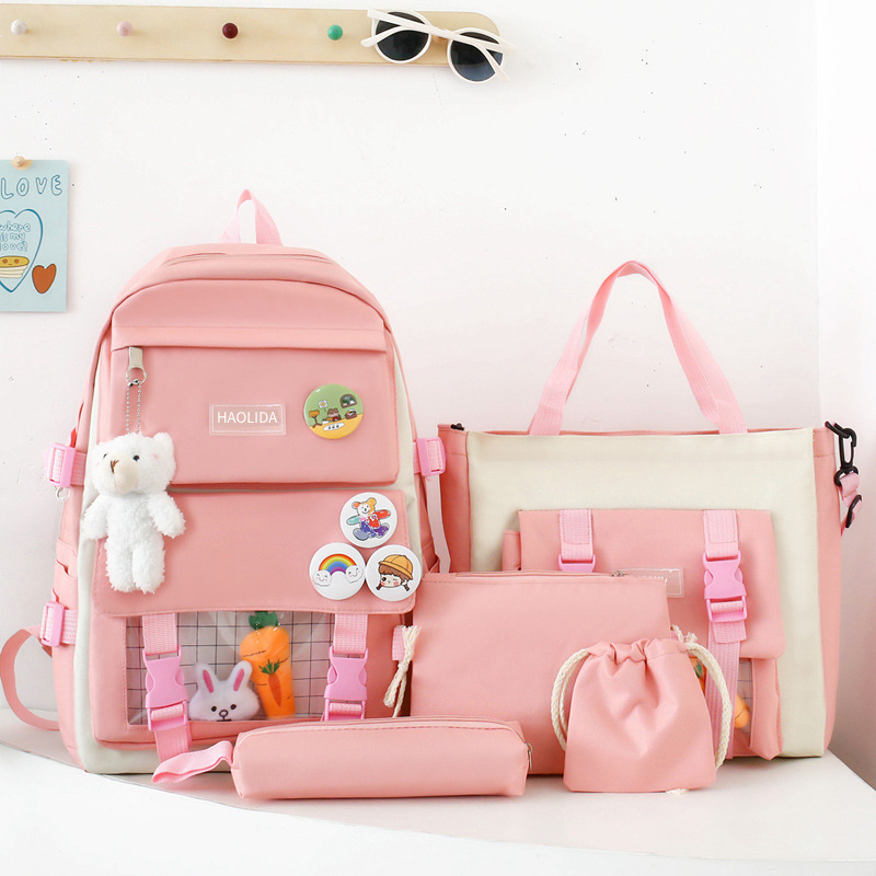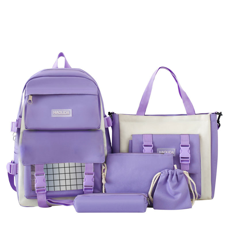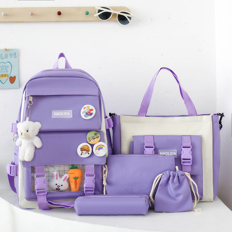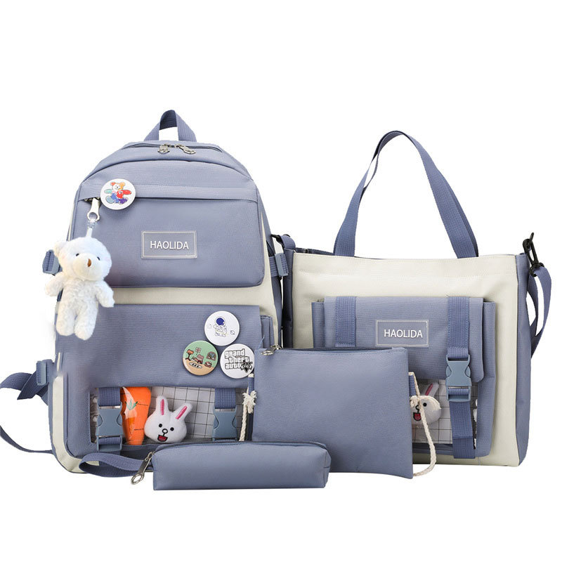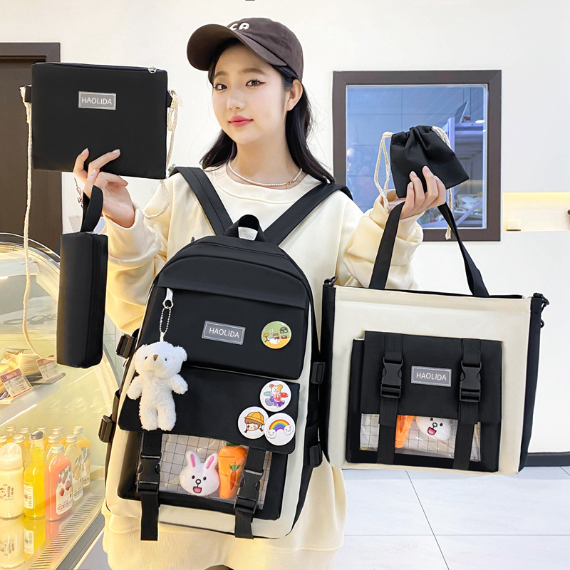 국경 4 종 학생 스쿨백 배낭 중학교 고등학교 고등학교 여학생 5 종 배낭 대용량 여행 가방
