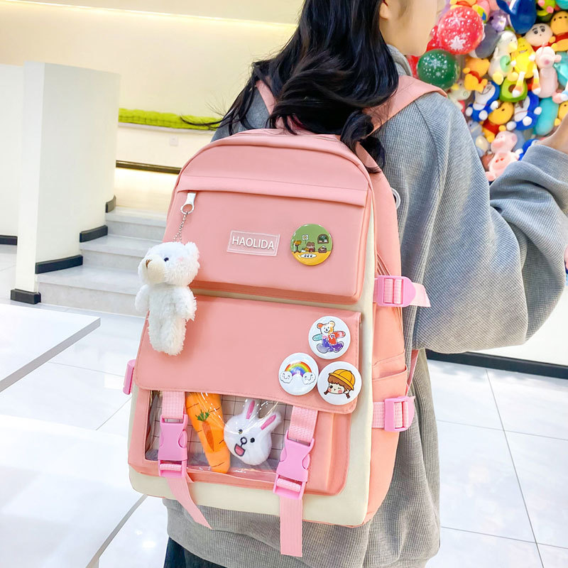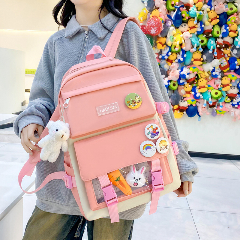 • 핑크 백팩+당근토끼*1+배지+곰펜던트