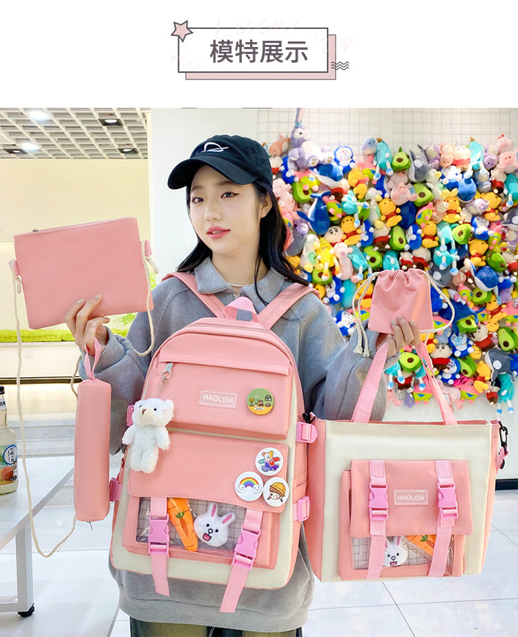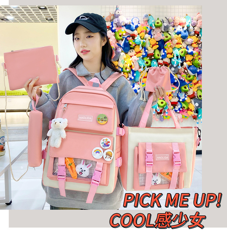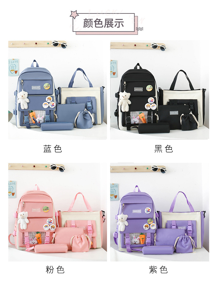 국경 4 종 학생 스쿨백 배낭 중학교 고등학교 고등학교 여학생 5 종 배낭 대용량 여행 가방스토어 가기