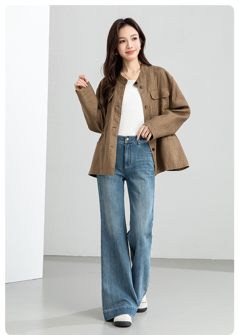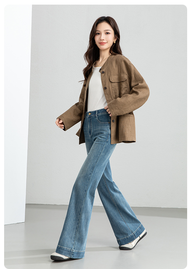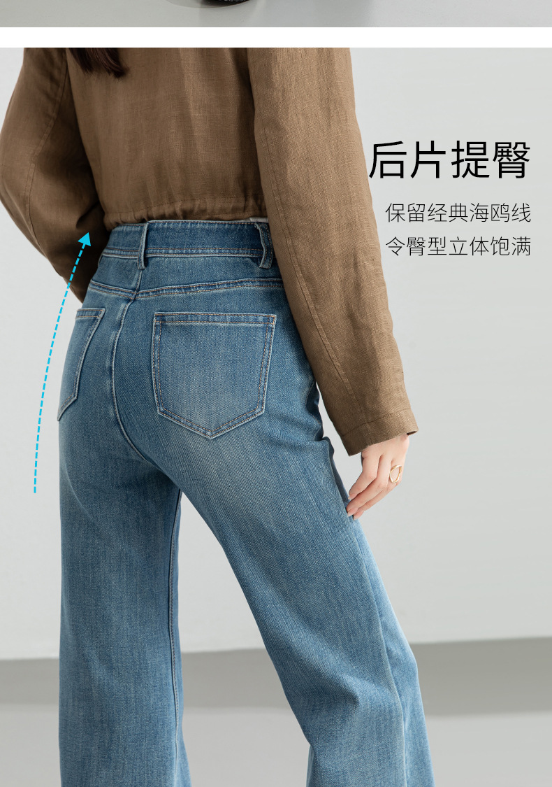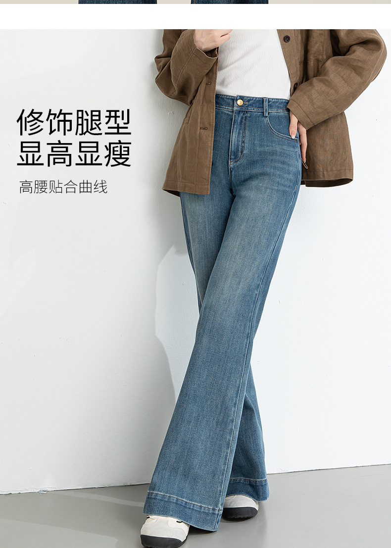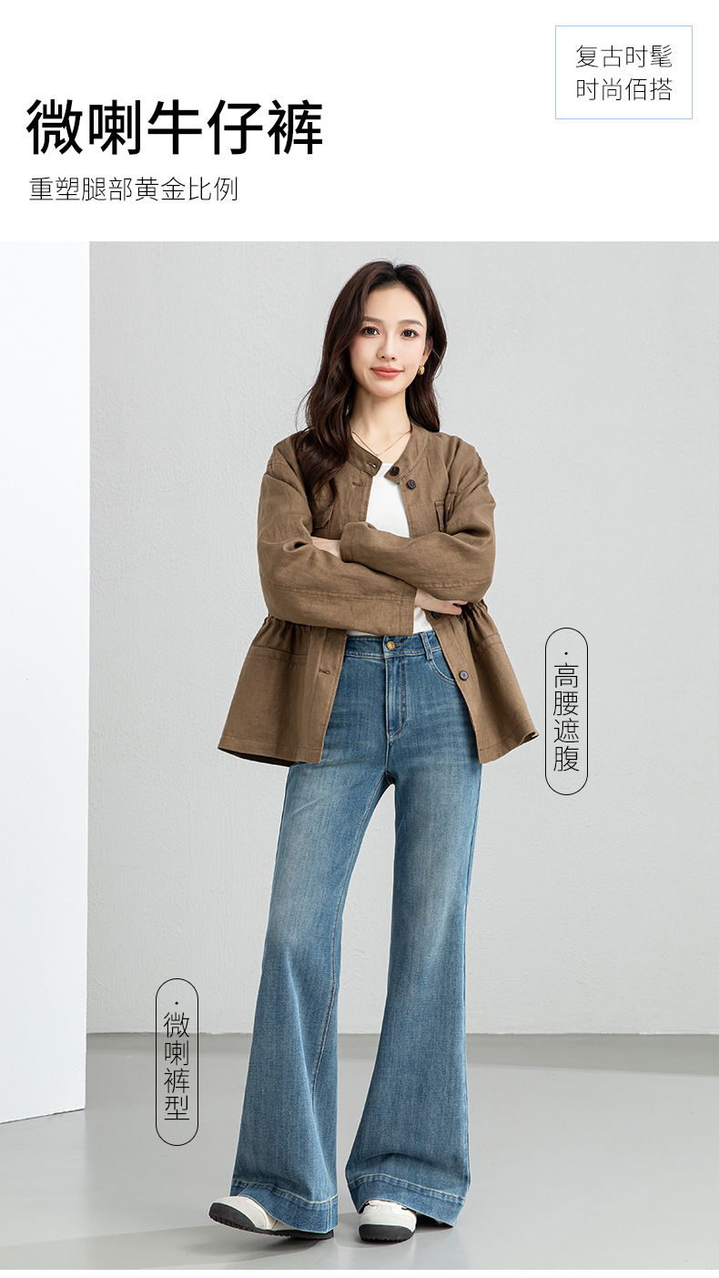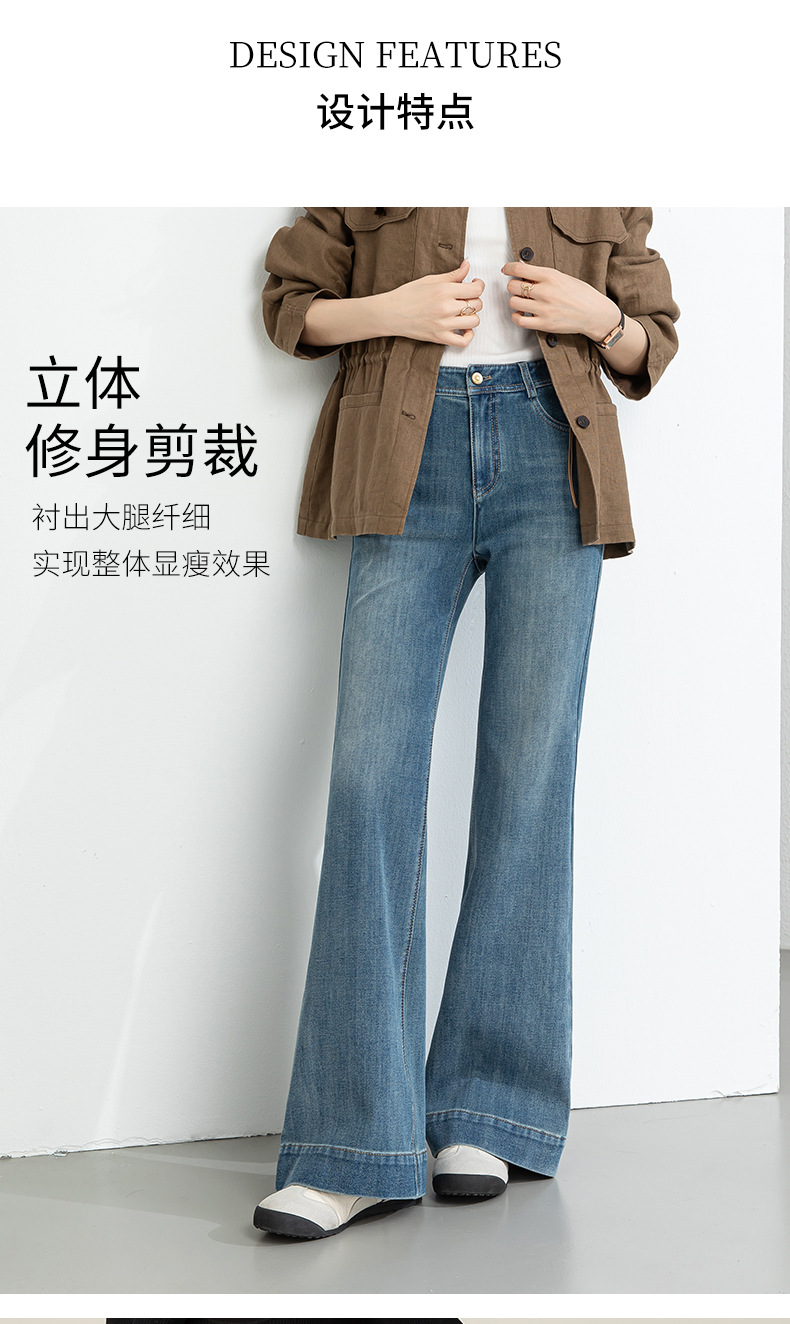 신거 텐셀 아메리칸 스타일 플레어 진 여성용 2026년 봄 신상품 작은 사이즈 약간 플레어 바지 레트로 신축성스토어 가기